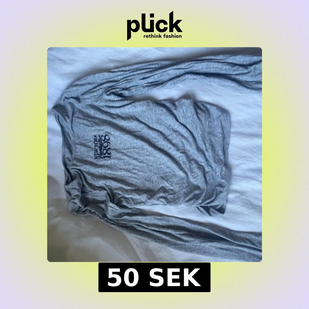 Säljer en enkel och mjuk grå långärmad tröja med trycket 'New York 1898' på bröstet. Perfekt för en avslappnad stil och passar till det mesta. Tillverkad i ett tunt och skönt material.
