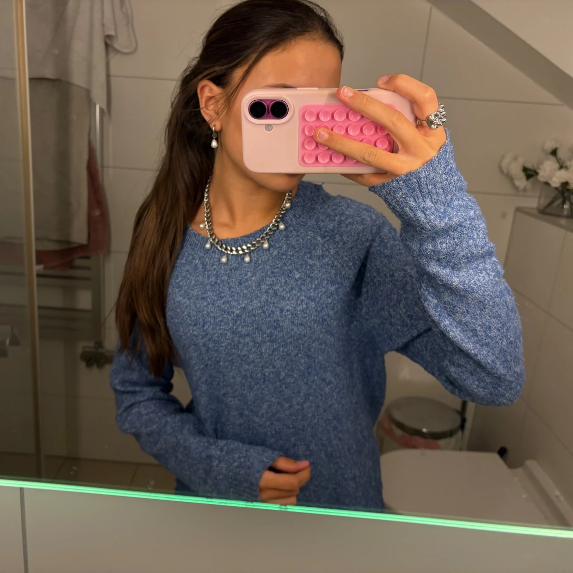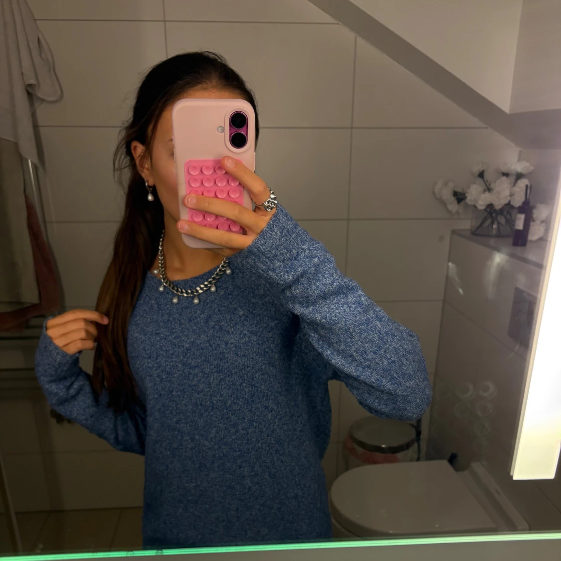 blå stickad tröja