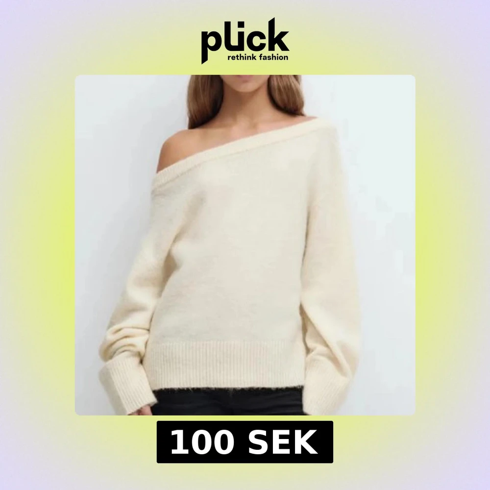Supermysig stickad tröja i beige med offshoulder-design och bred ribbad kant vid ärmslut och nederkant. Perfekt för dig som gillar en chill och snygg look med lite extra attityd. Långärmad och loose passform för maximal komfort.