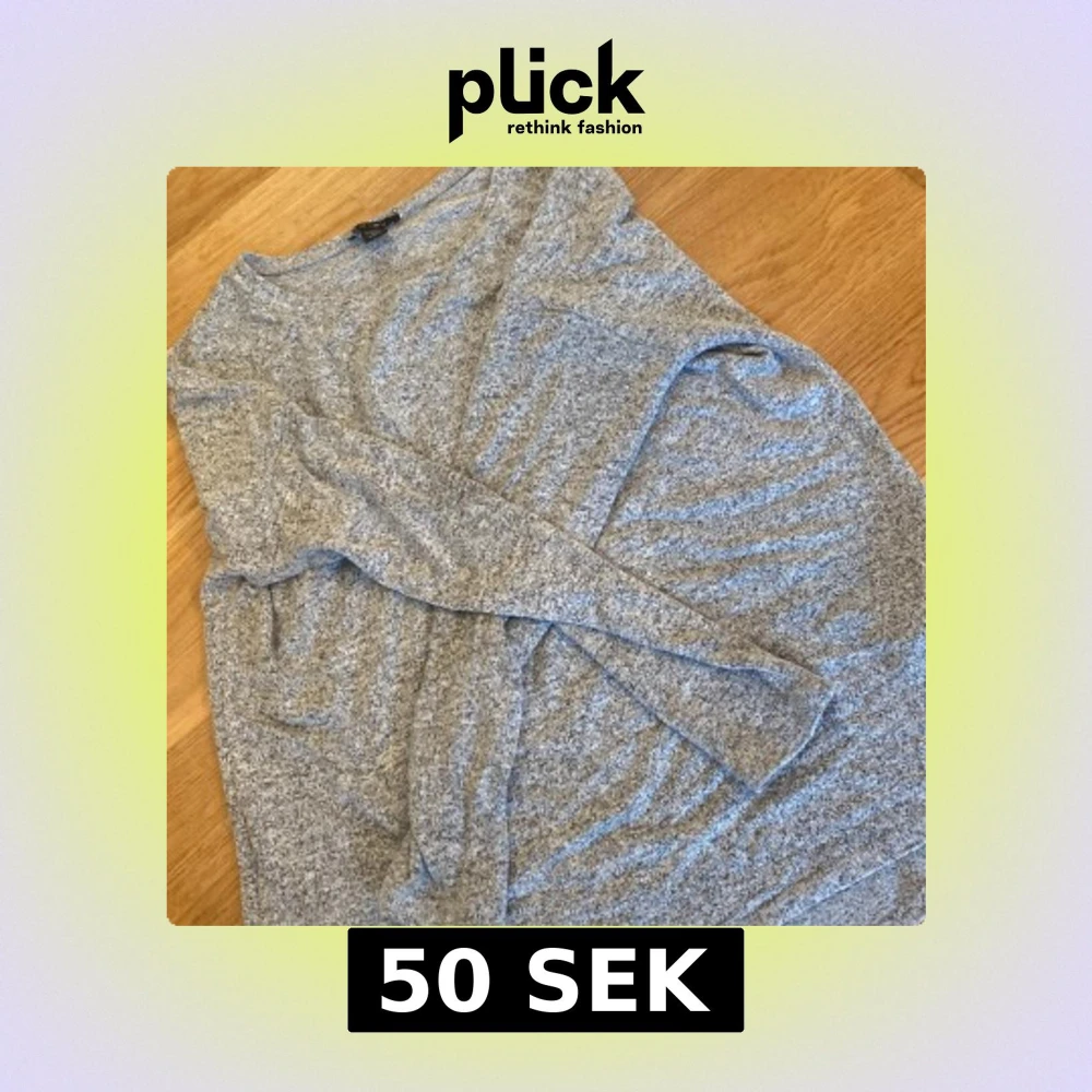 Säljer en mysig grå stickad tröja med långärmad design. Perfekt för kyligare dagar och enkel att matcha med olika outfits. Tröjan har en klassisk rund hals och är tillverkad i ett mjukt material.