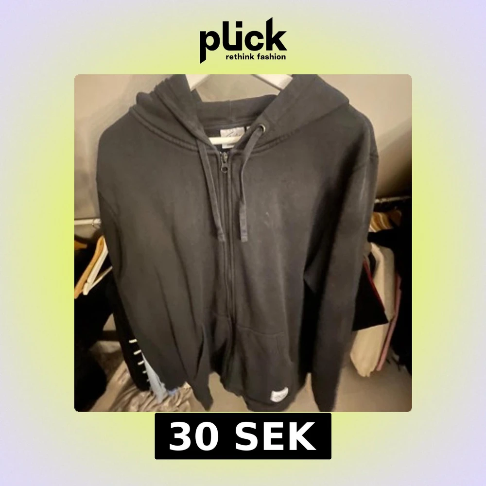 Säljer en svart hoodie från Frank Dandy. Den har en dragkedja framtill och en klassisk huva.