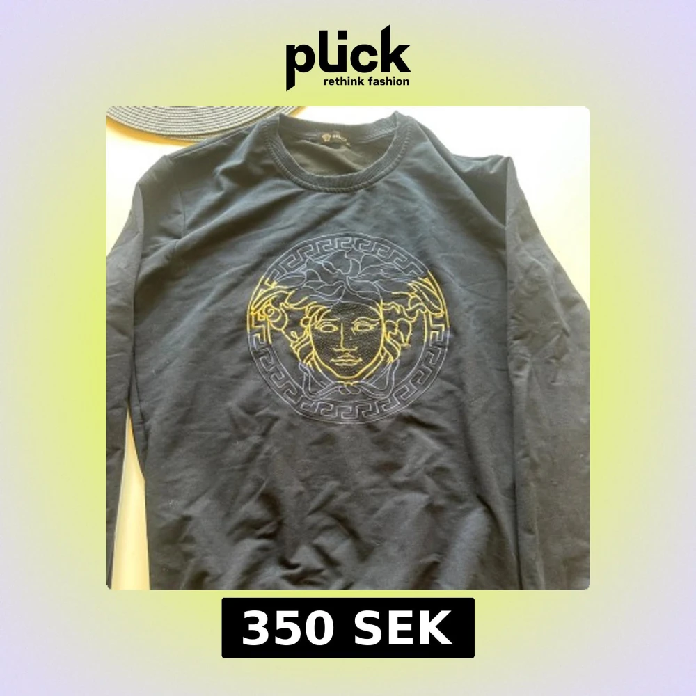 Svart sweatshirt med ikoniskt motiv broderat i gult och grått på bröstet. Tröjan har rund hals, ribbade muddar och är långärmad. Materialet är mjuk bomull som känns skönt mot huden. Perfekt för dig som gillar statement-plagg och exklusiv design. (Liten i storleken)