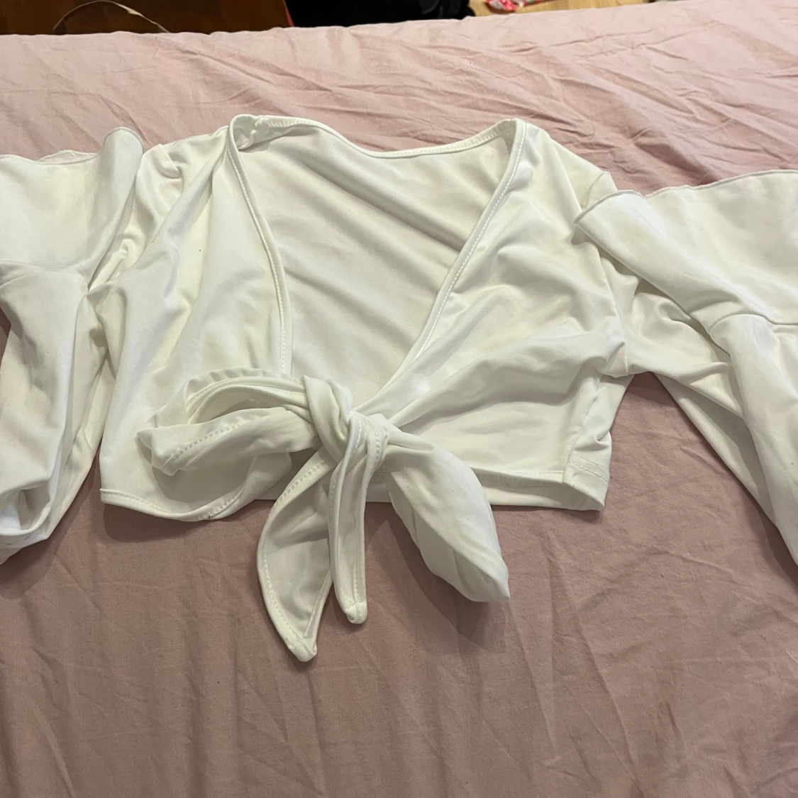 Säljer min långärmad tröja från shein med lite puff grejer i slutet på armarna. Som ni ser så är lappen avklippt men tror de är stolek xxs men passar på folk med xs. Köparen står för frakt.