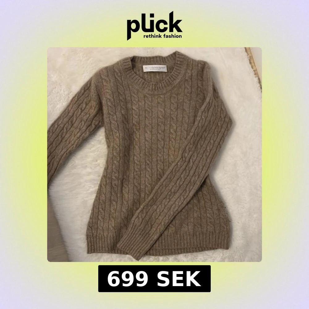 Mysig beige kabelstickad tröja i 100% kashmir från FTC. Klassisk rund halsringning och långa ärmar. Perfekt för hösten, Den är även tight i midjan som då ger en snatched look. Köpt för 1500kr och säljer för 699kr