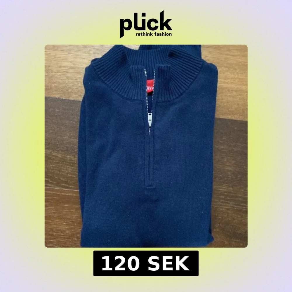 Snygg mörkblå stickad tröja från ryvls med ribbad krage och half zip-dragkedja.