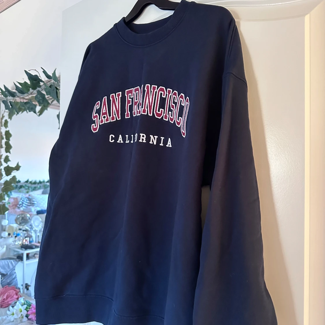 Säljer en mörkblå sweatshirt i oversized fit från bikbok. Tröjan har långa ärmar och en rund halsringning. Använd 1 gång. Storlek S. Pris kan diskuteras💗 Köparen står för frakt.