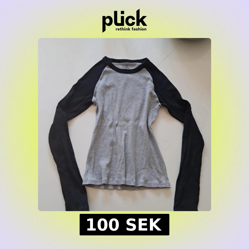 Säljer en ribbad långärmad topp från Brandy Melville i grått med svarta ärmar och krage. Inga större tecken på användning, skriv gärna vid funderingar🙂