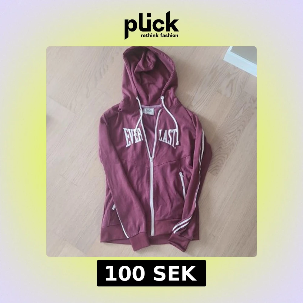Säljer en vinröd hoodie från Everlast med vit dragkedja och vita detaljer. Tröjan har huva, långa ärmar med ränder på sidorna och fickor framtill. Perfekt för en sportig och avslappnad stil. Inga tecken på slitage, kom privat för fler bilder eller mått!