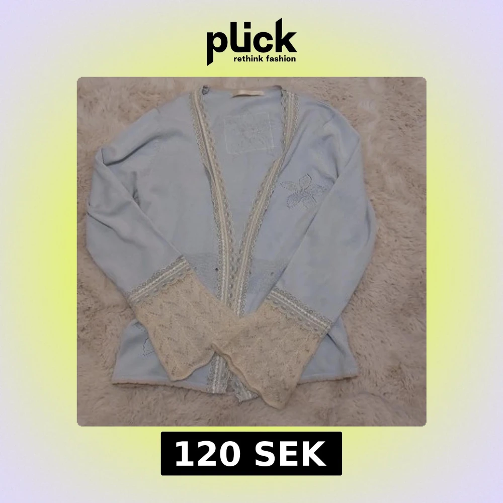 Säljer jättegullig coquette kofta💞 Säljer en ljusblå kofta med vackra spetsdetaljer och broderade blommor. Koftan har långa ärmar och en öppen design framtill. Perfekt för en elegant och romantisk stil.