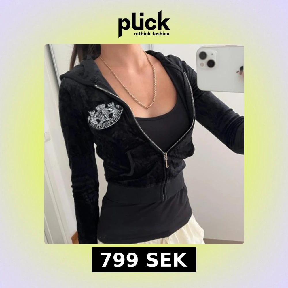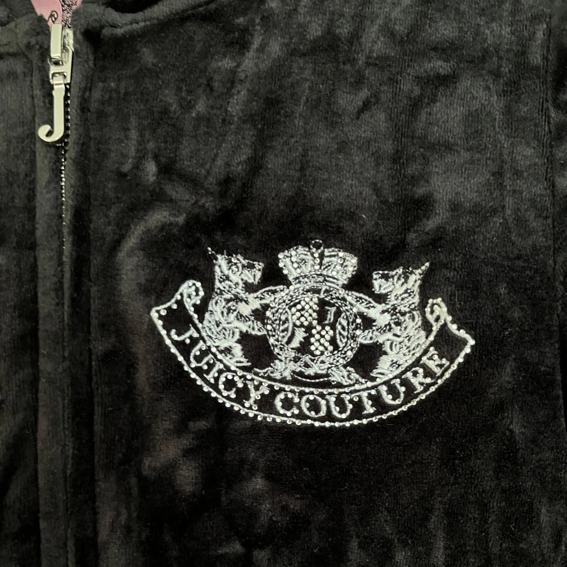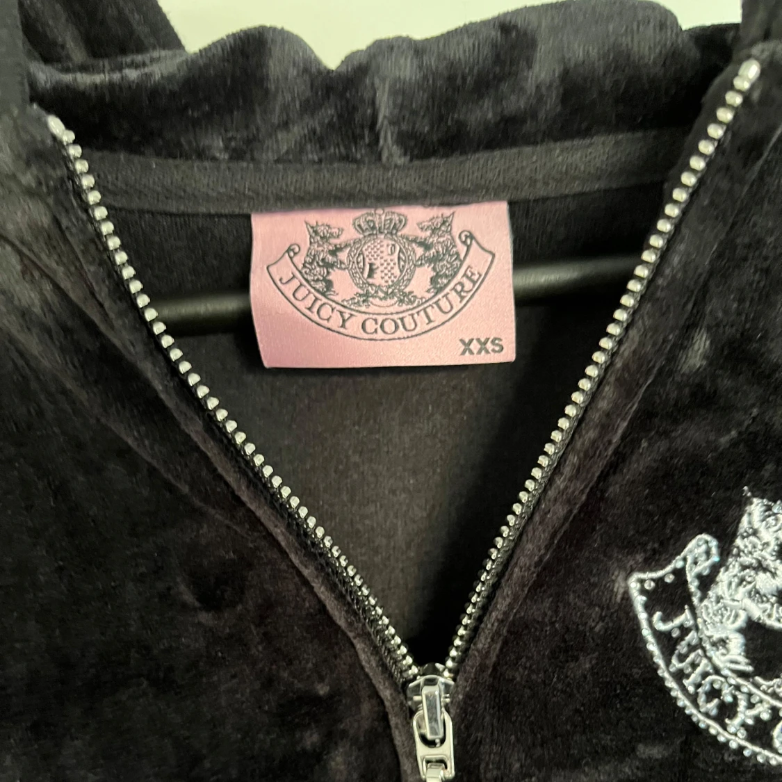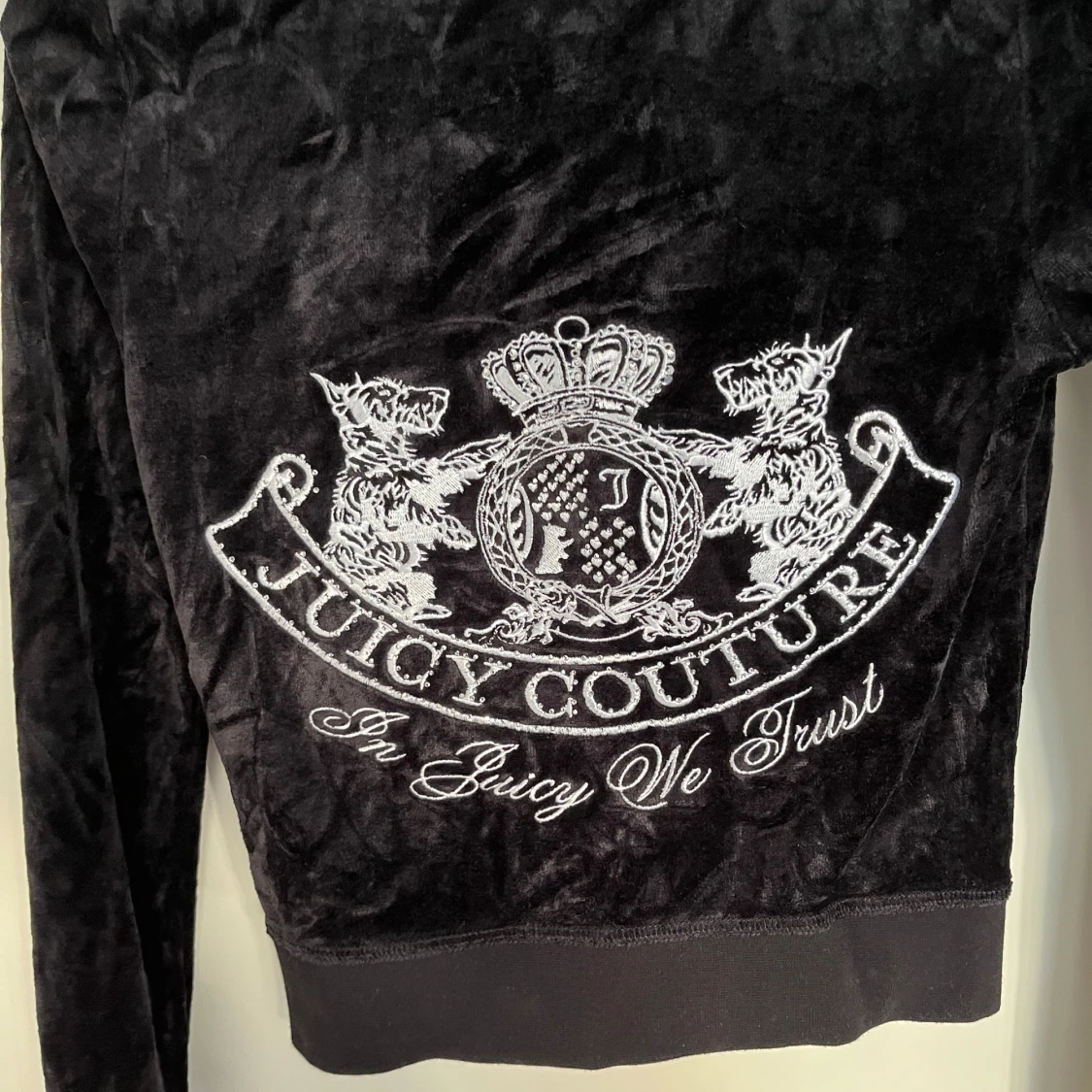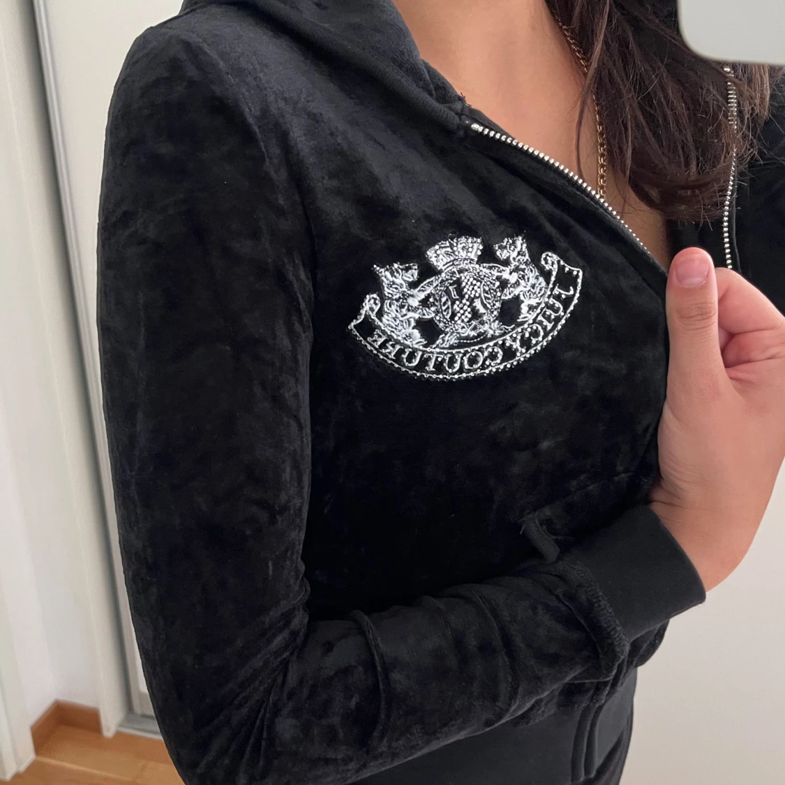 Säljer en svart hoodie från Juicy Couture i mjuk velour med silverfärgad dragkedja och broderad logga på bröstet och ryggen. Jackan har huva, långa ärmar och ribbade muddar. Croppad och åtsittande, sitter jätte fint. Pris kan diskuteras💕