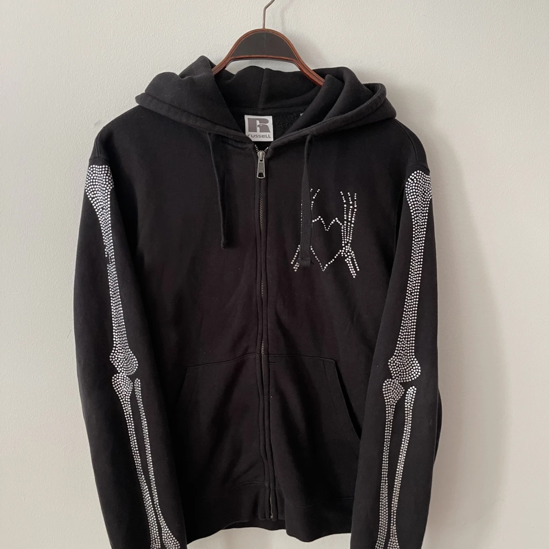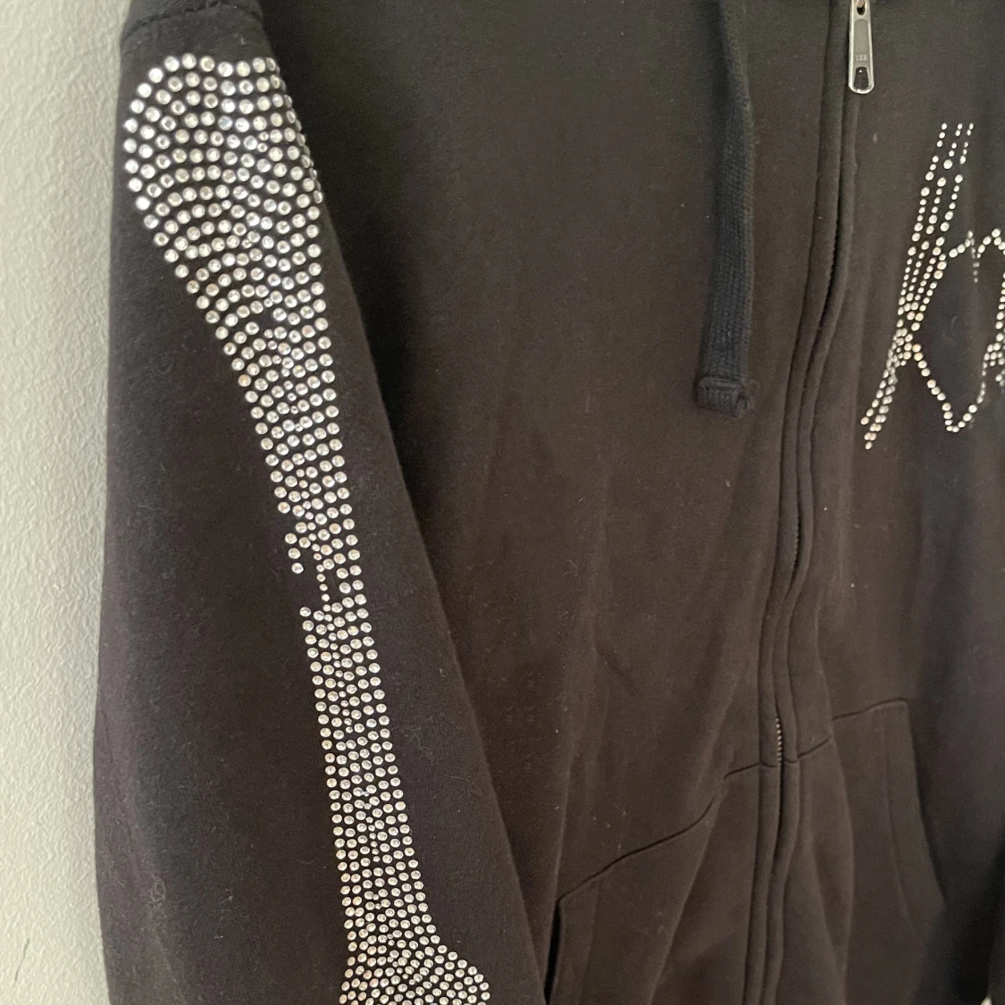Snygg rhinestone tröja med rhinestones på bröstet och på armarna. Vissa av stenarna har åkt av men annars bra skick