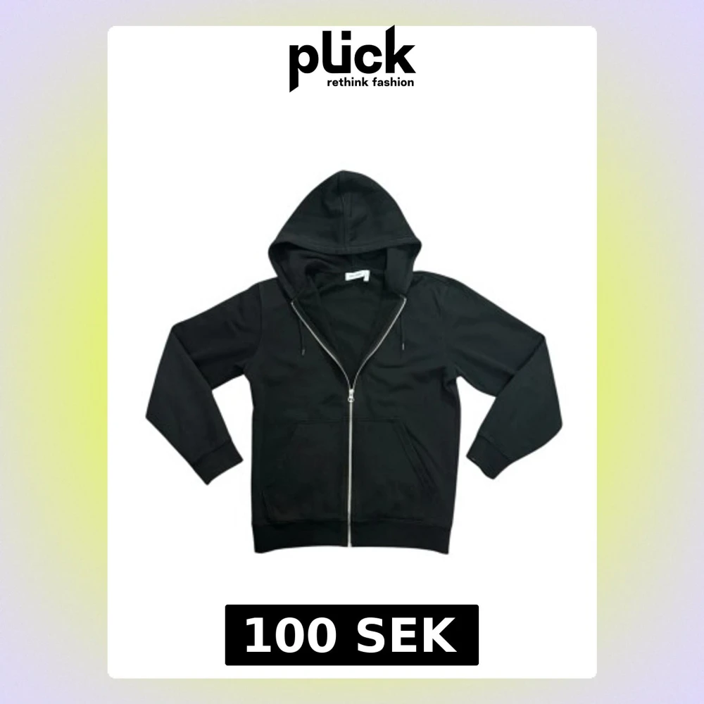 Svart hoodie från Weekday med huva och snörning, hel dragkedja framtill och två stora fickor. Tillverkad i mjuk bomull, perfekt för chill dagar. Klassisk passform och ribbade muddar vid ärmslut och nederkant. Den är storlek xs men sitter som s