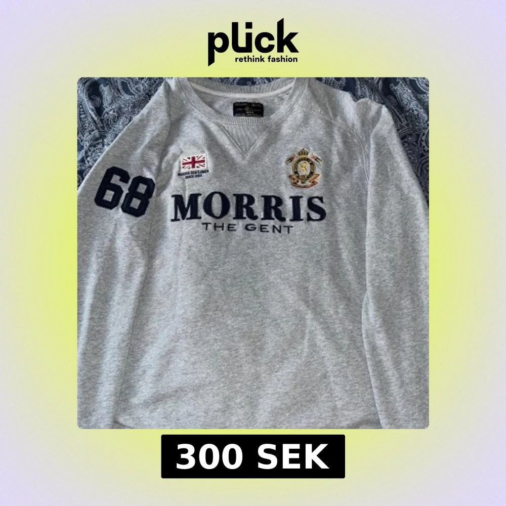 Säljer en stilren grå tröja från Morris Gents med broderad logga och text på bröstet. Tröjan har långa ärmar och ett klassiskt snitt. Perfekt för en avslappnad men ändå snygg look.