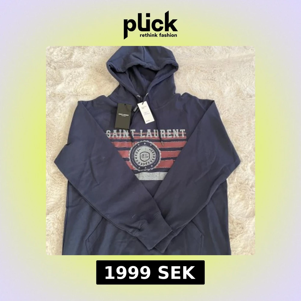 Säljer en riktigt snygg och stilren Saint Laurent hoodie i marinblått, storlek M. Hoodien är i nyskick (10/10) och endast testad. Modellen har en retroinspirerad logga framtill med klassiska ”Saint Laurent”-trycket. Nypris ca 8000 kr – vårt pris: 1999 kr Tveka inte att höra av dig vid frågor! 🙌.