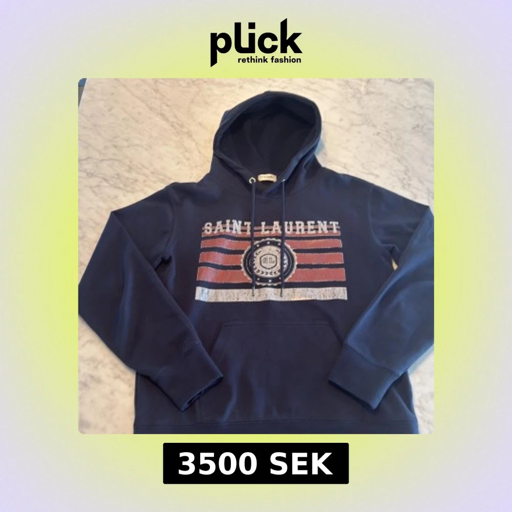 Mörkblå hoodie från Saint Laurent. Väldigt bra skick i storleken S, mitt pris 3500kr nypris runt 7000kr