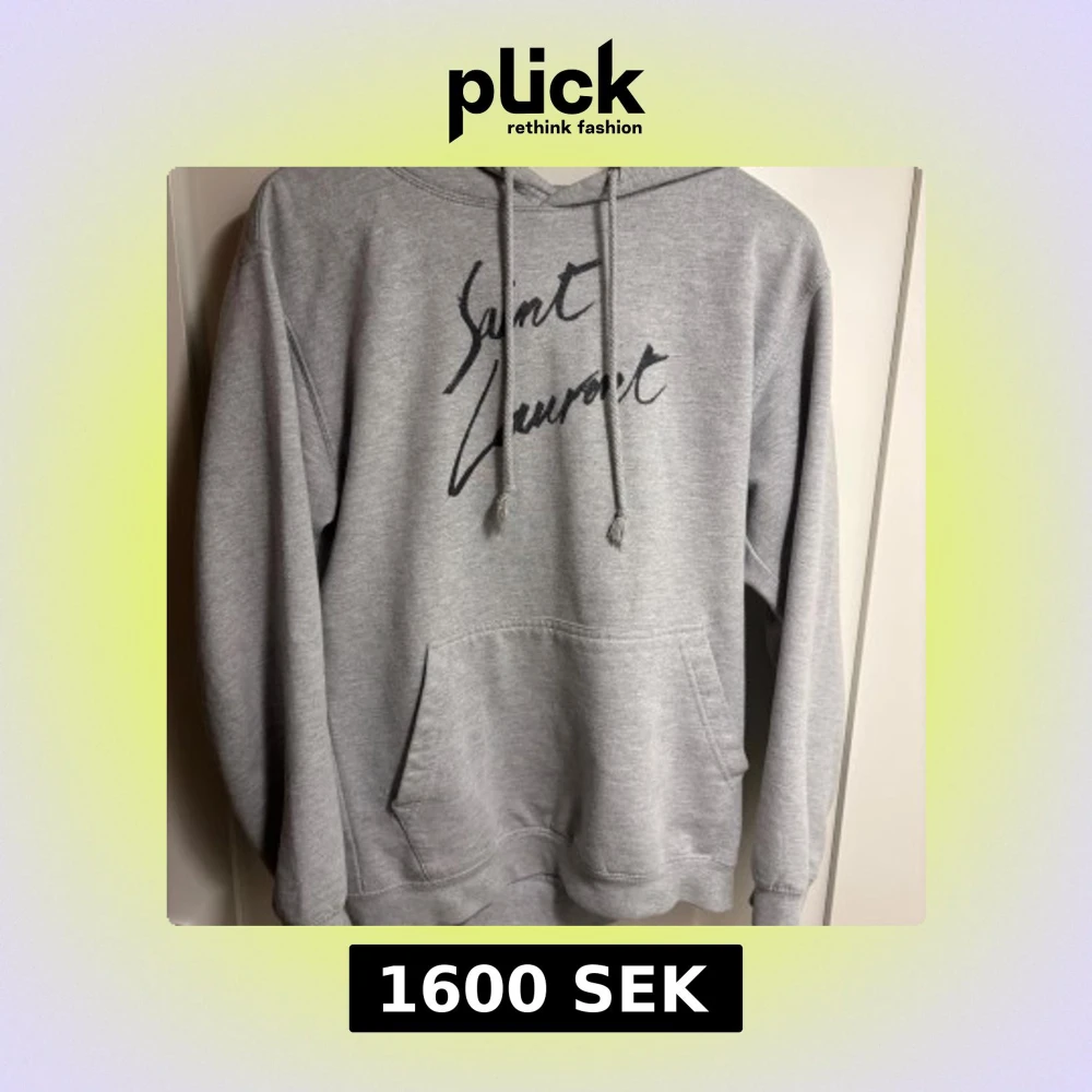 Snygg grå hoodie från Saint Laurent med svart logotyptryck framtill. Klassisk känguruficka, huva med snörning och långa ärmar. Perfekt för en chill och trendig look. Mjuk och skön i bomullsblandning.