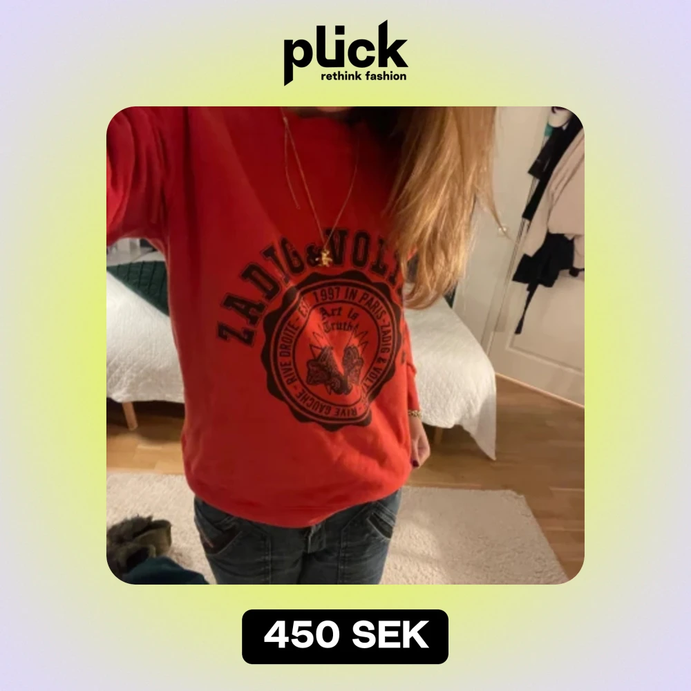 Säljer dennna skitsnygga Zadig tröjan med en unik design!!❤️❤️Det står ingen storlek men skulle säga att det är en storlek M, använd fåtal gånger och i mycket fint skick❤️