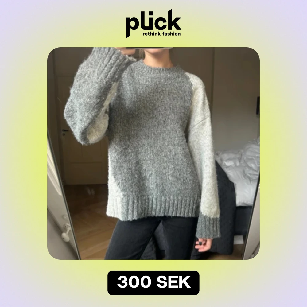 Grå stickad tröja, använd 2 gånger så i rätt bra skick (men syns att den blivit använd)