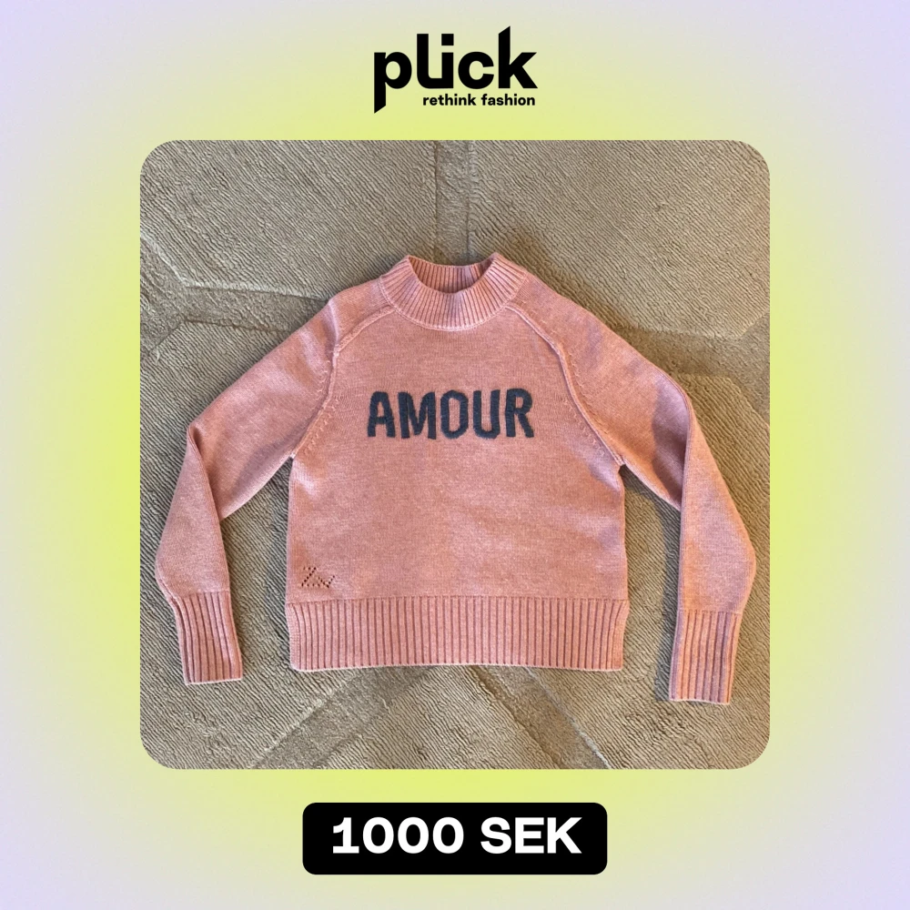 Oanvänd snygg stickad tröja från Zadig & Voltaire designad med ribbstickade muddar och texten AMOUR på bröstet. Perfekt till både jeans och kjol!