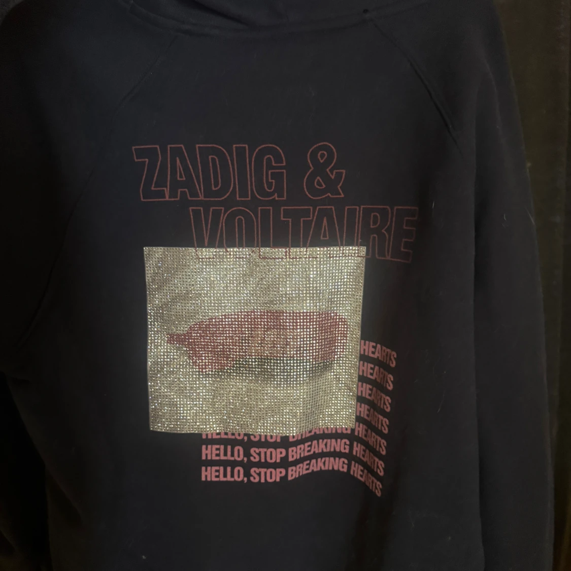 Marinblå Zadig & Voltaire hoodie med diamant detaljer på baksidan väldigt fint designad. Nästan helt ny, har använt en gång. Skriv för fler bilder🤗ny pris 3200kr