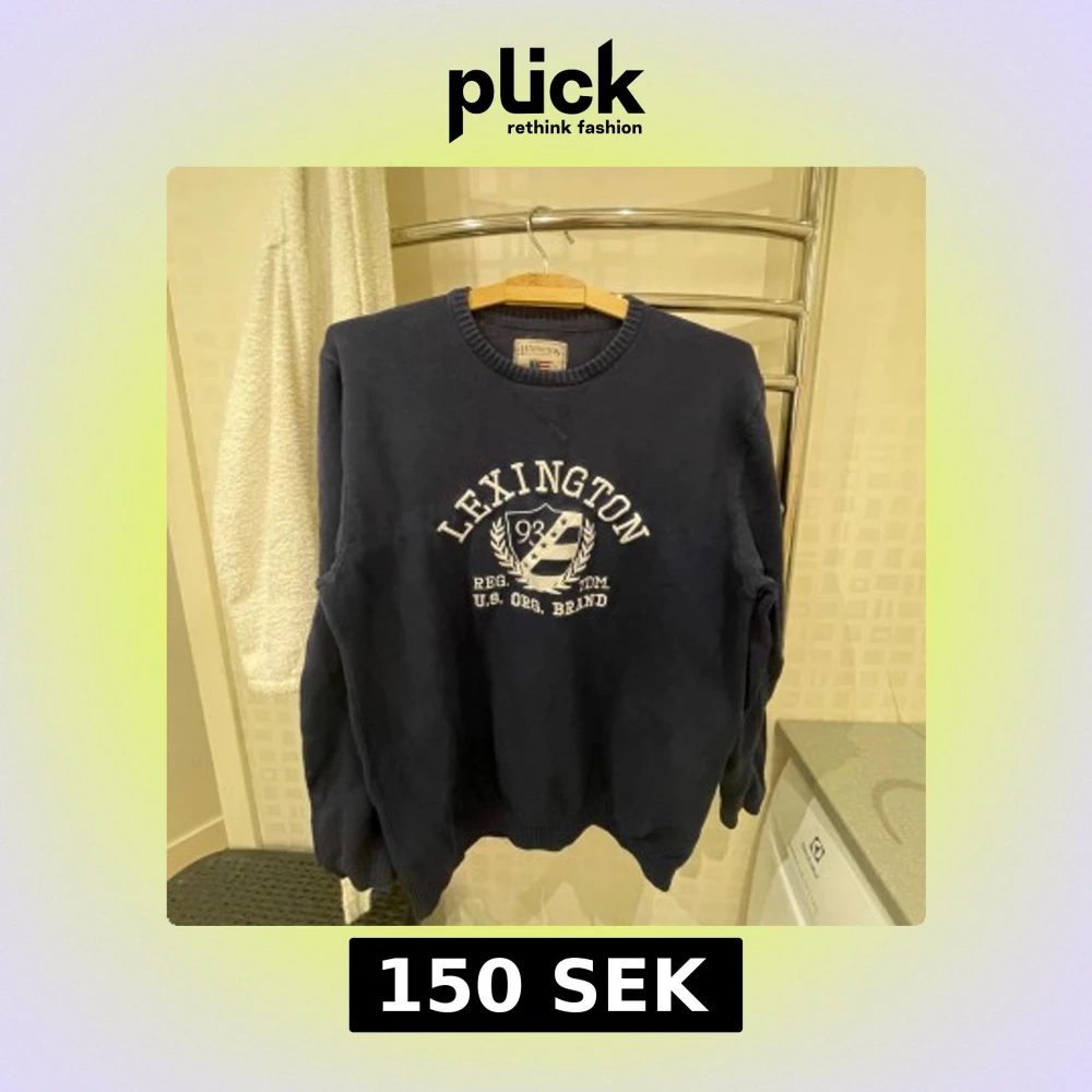 Säljer en mörkblå tröja från Lexington med vit text och emblem på framsidan. Tröjan har rund hals och långa ärmar, perfekt för en avslappnad stil. Den är tillverkad i ett mjukt material som ger en bekväm passform.