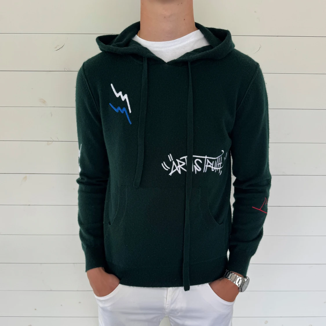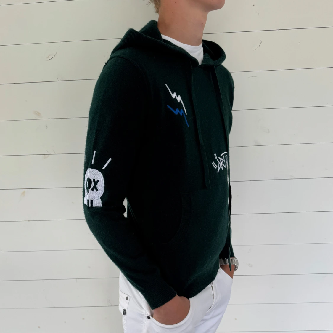Säljer nu denna snygga Zadig Voltaire hoodien i storlek M. Riktig snygg och unik och gjord på 100% cechmere. Använt den 1 gång då den va för liten så den är fortfarande i sjukt bra skick förutom den lilla defekten vid kragen nej som går att fixa super enkelt. Skriv vid mista fundering🤝