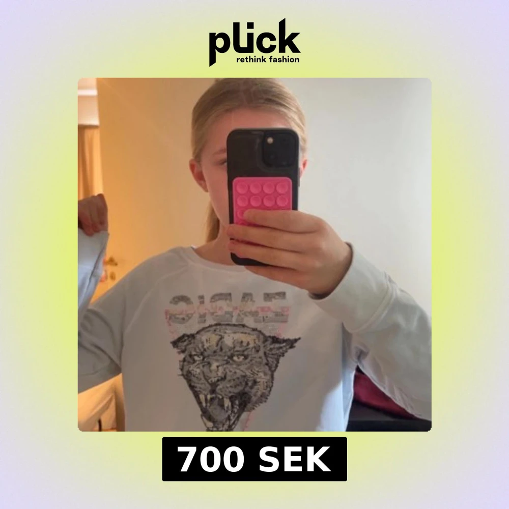 Cool vit sweatshirt från Zadig & Voltaire med ett stort tryck av ett panterhuvud och texten 'FAR SIC' i glittriga detaljer. Tröjan har rund hals och långa ärmar, perfekt för dig som vill sticka ut med en edgy vibe.
