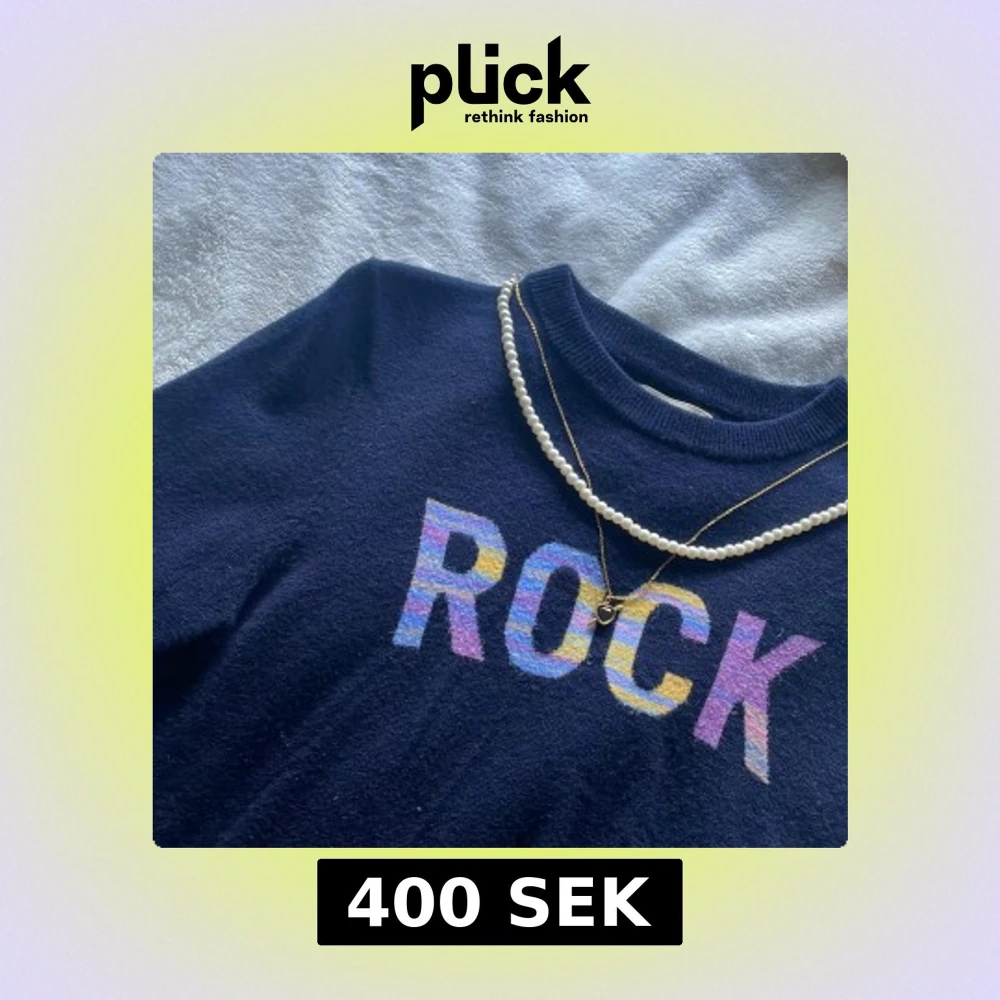 Supermjuk mörkblå långärmad tröja!! Med text ”ROCK” i storlek xs och köpt här på plick!! (Under ena armen har jag sytt så gott jag kan, för att den hade hål i när jag fick den)!! Säljer för den är förliten!! Pris kan diskuteras