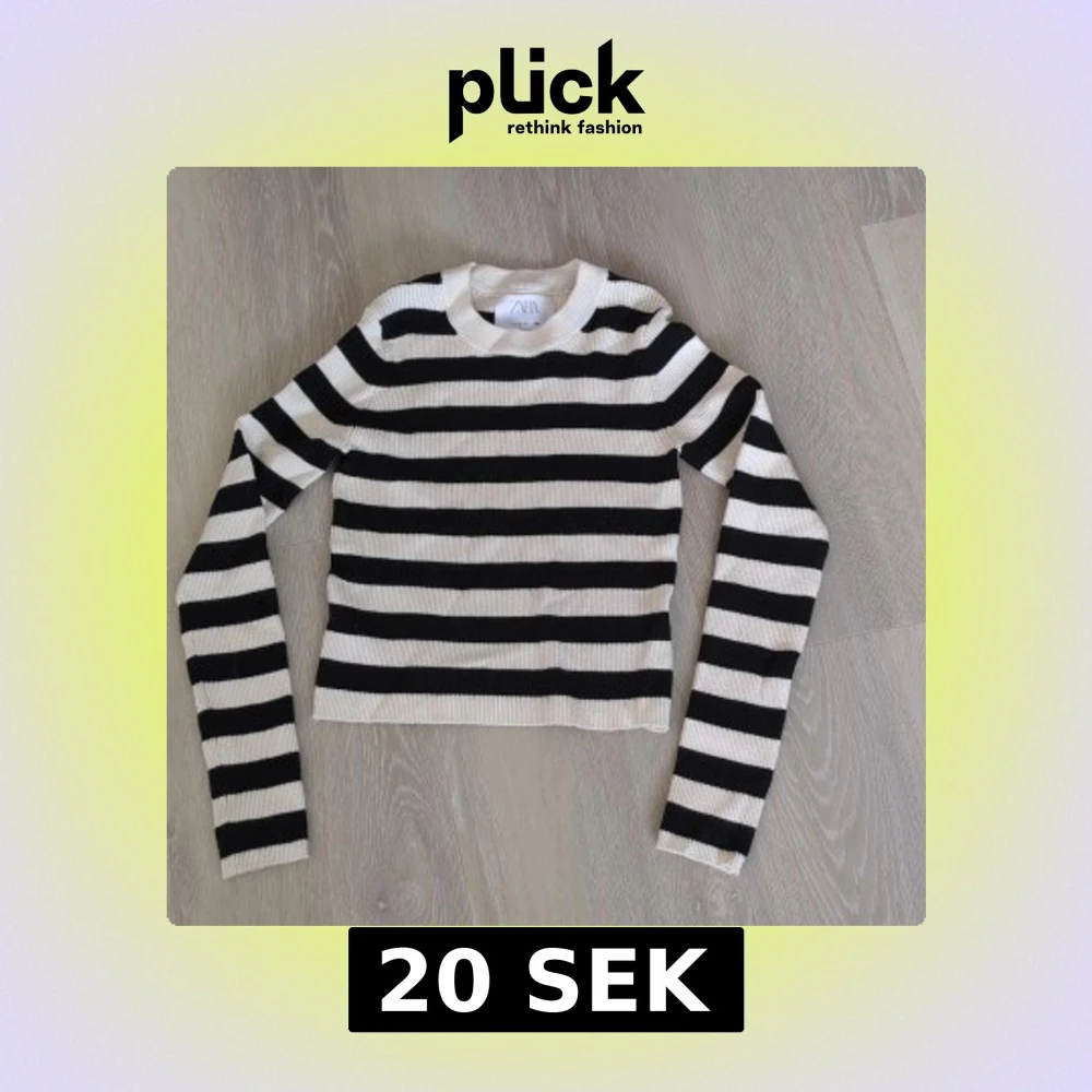 Snygg ribbstickad tröja från Zara i svart och vitt med breda horisontella ränder. Tröjan har rund halsringning och långa ärmar, perfekt för en stilren och trendig look. Passar dig som gillar klassiska mönster och enkel design.