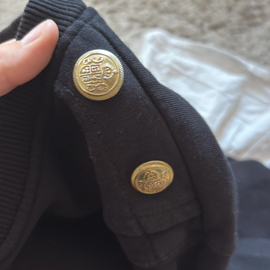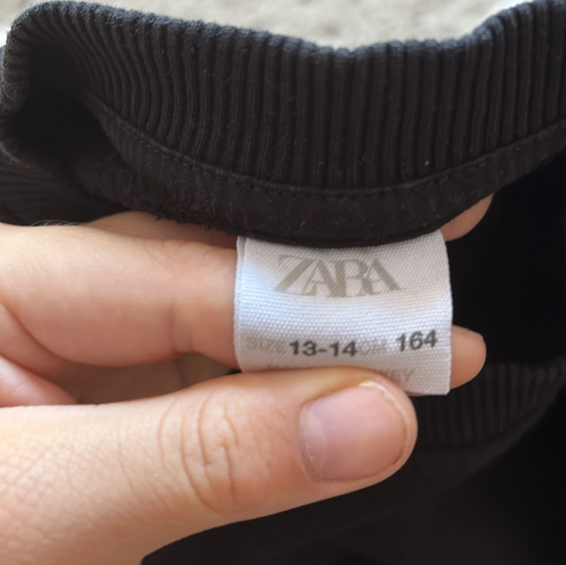 Cool svart omlott tröja från Zara med vita volangdetaljer nedtill som ger en lager-på-lager känsla. Guldiga knappar på axeln för extra stilpoäng. Långärmad och perfekt för dig som gillar unika plagg med snygga detaljer.
