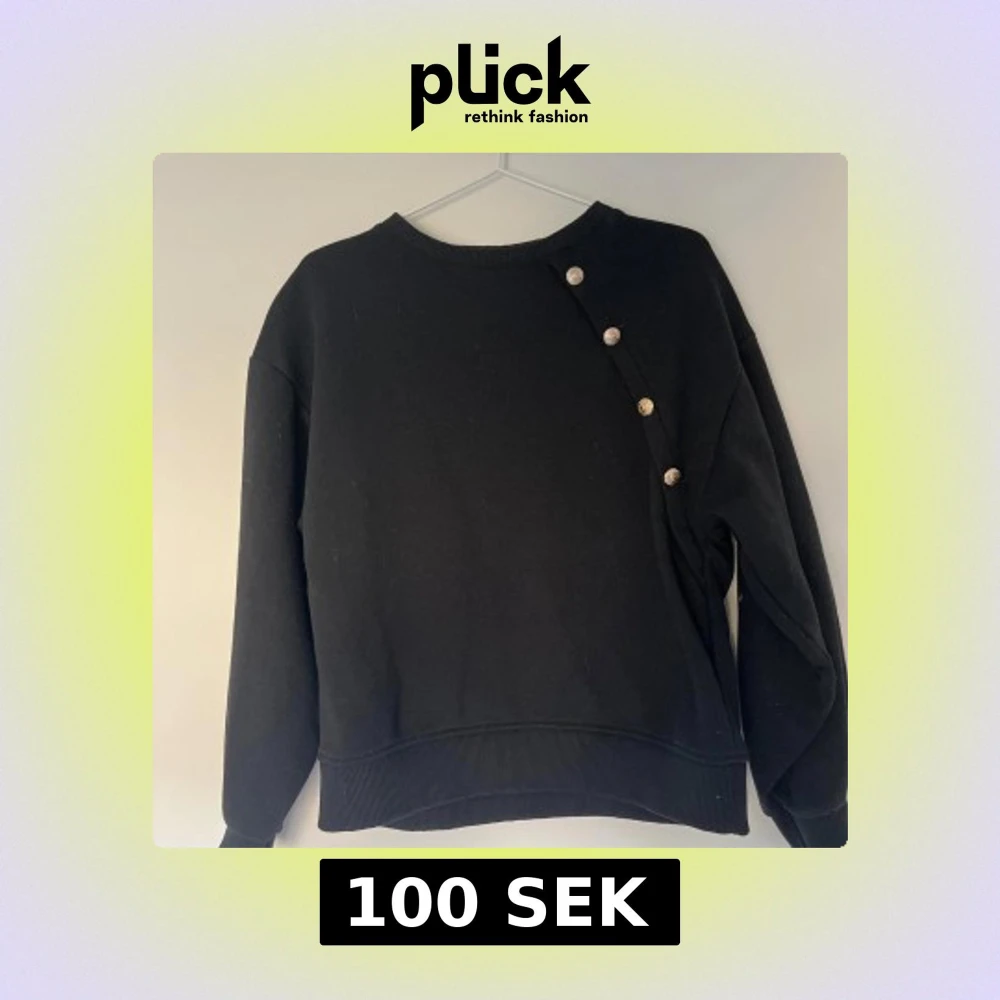 Snygg svart tröja med unika knappar pĂ„ sidan frĂ„n Zara. Tröjan har lĂ„nga Ă€rmar och en rund halsringning. Perfekt för en stilren look. Storleken pĂ„ tröjan Ă€r 164, Lite Ă„t det större hĂ„let i storlekenđ