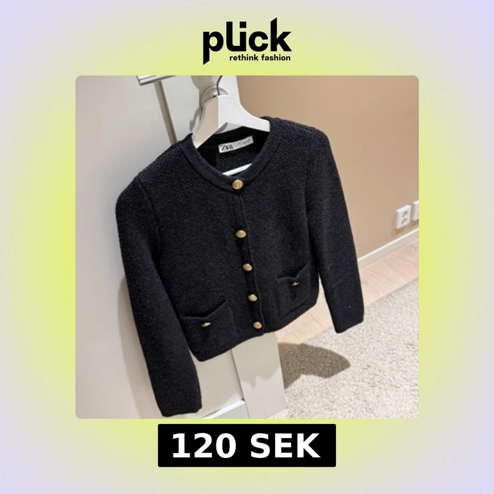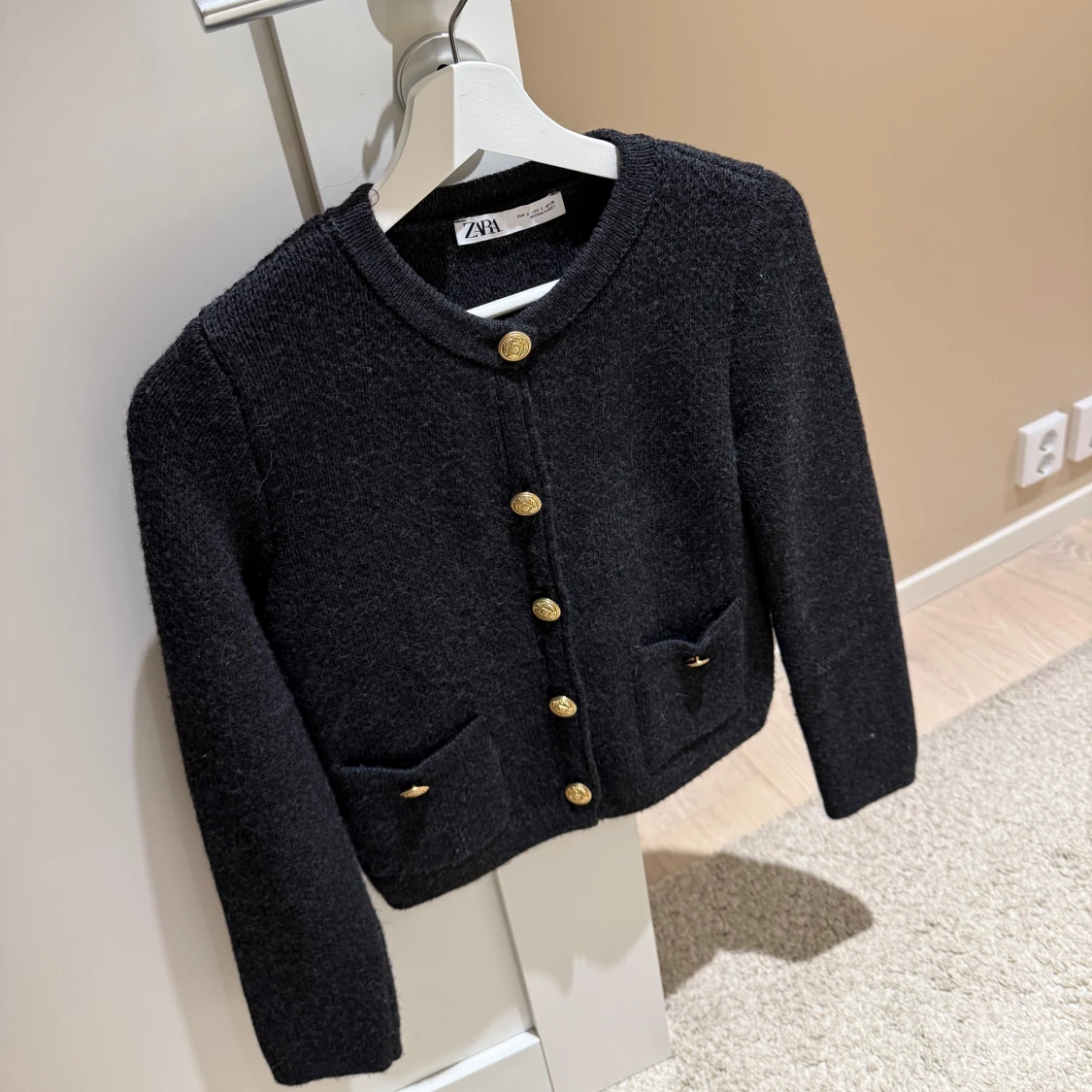 Fin kofta ifrån zara, mörkgrå färg med guldknappar 💫använd ett fåtal ggr, dock en mask som gått upp vid ena ärmen men går att fixa 🤍inga andra defekter