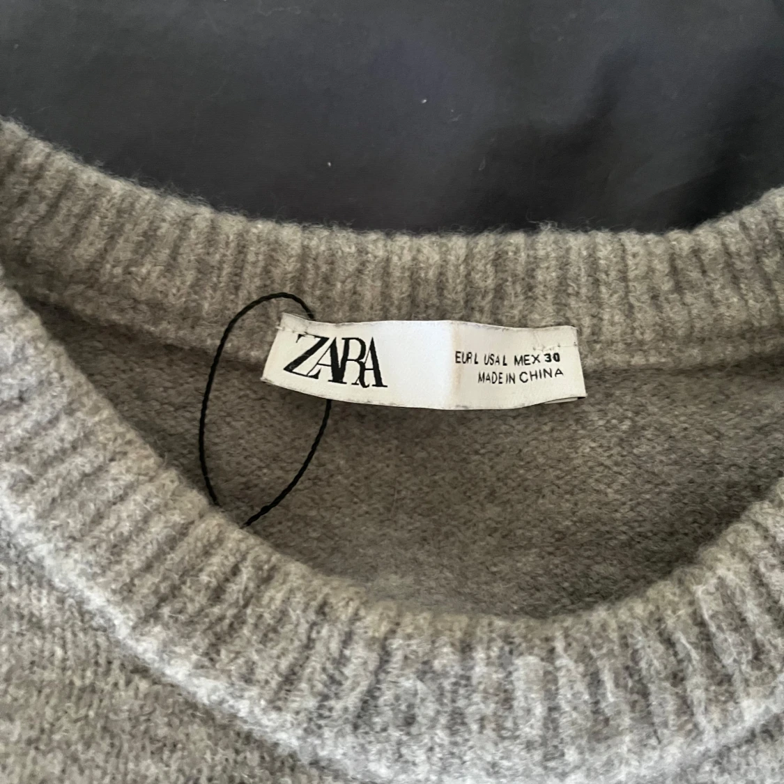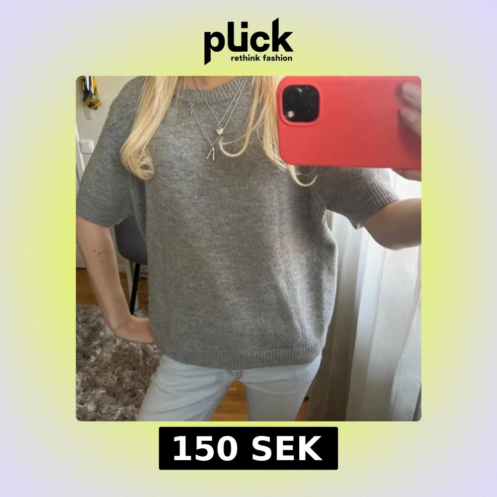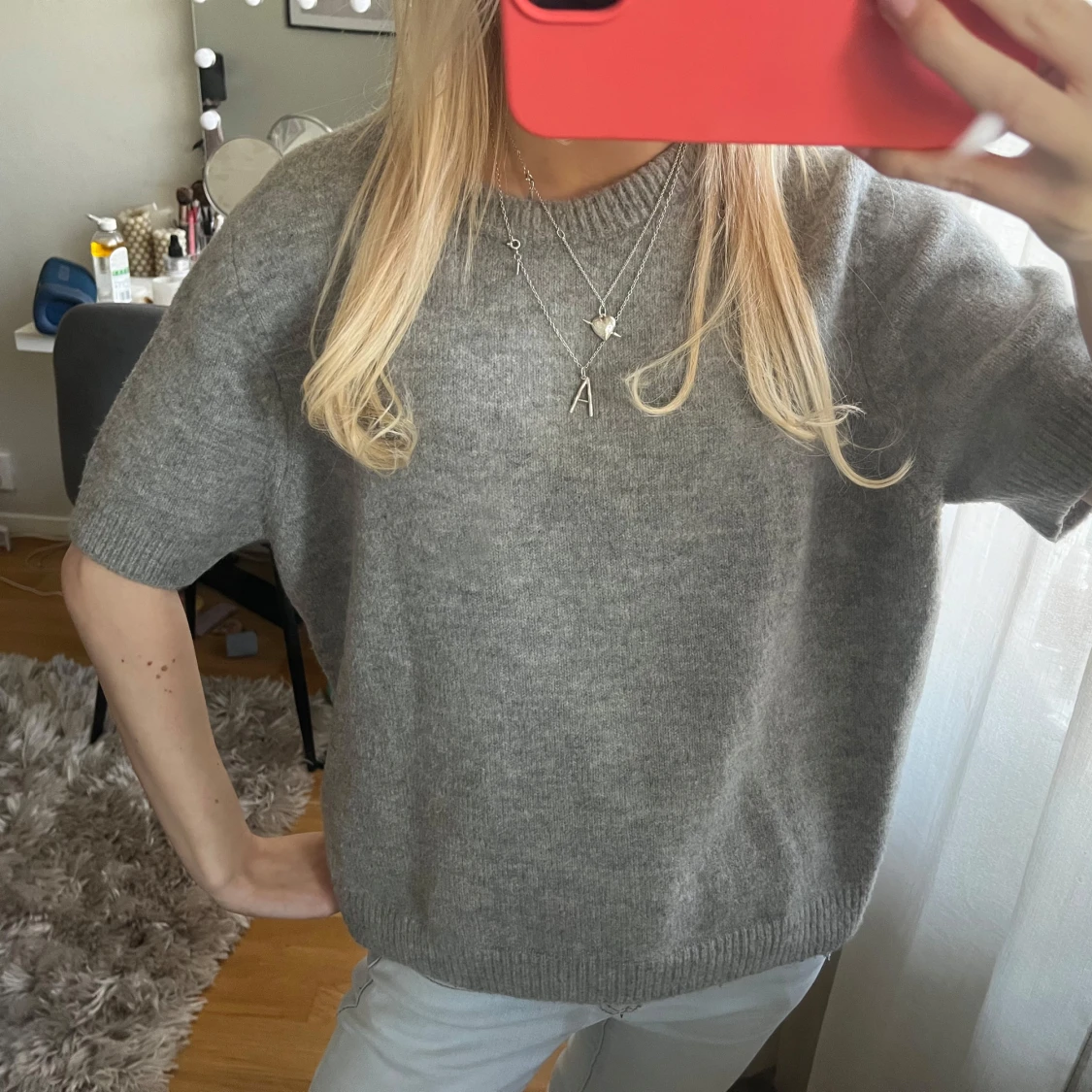 Mysig grå stickad tröja från Zara med kortare ärmar och rund halsringning. Perfekt att styla med jeans eller kjol för en enkel och stilren look.