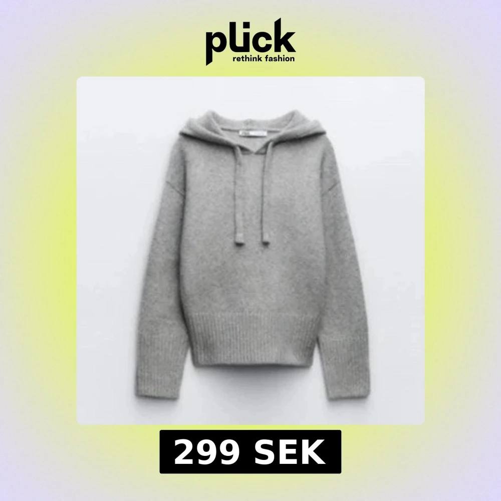 Mysig grå hoodie från Zara med huva och snörning. Tröjan är stickad i mjukt material och har breda ribbade muddar vid ärmslut och nederkant. Perfekt för chill dagar och snygg att styla.