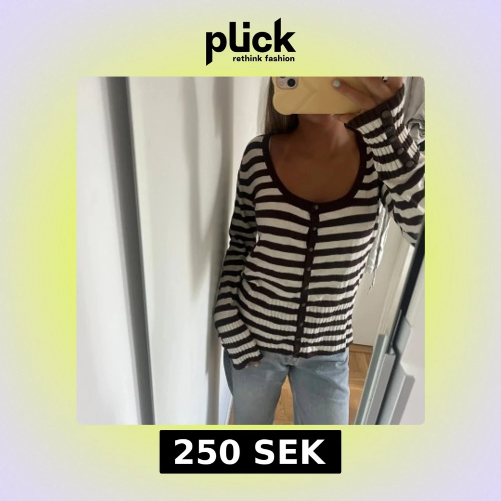Superfin randig finstickad kofta med knappar på ärmen, perfekt nu till höst🤎🤎den är i storlek L men passar verkligen mindre