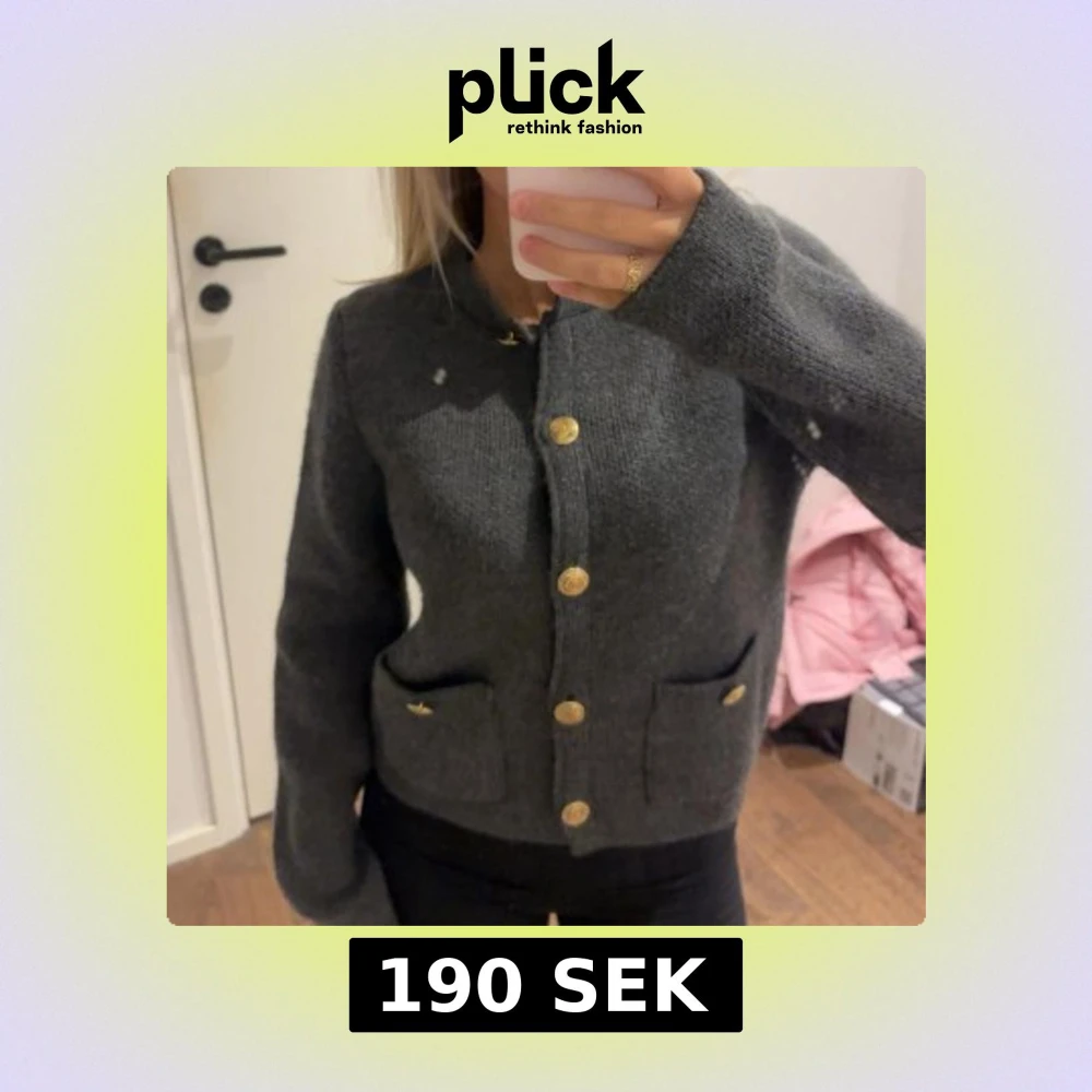 Mörkgrå stickad kofta med guldknappar