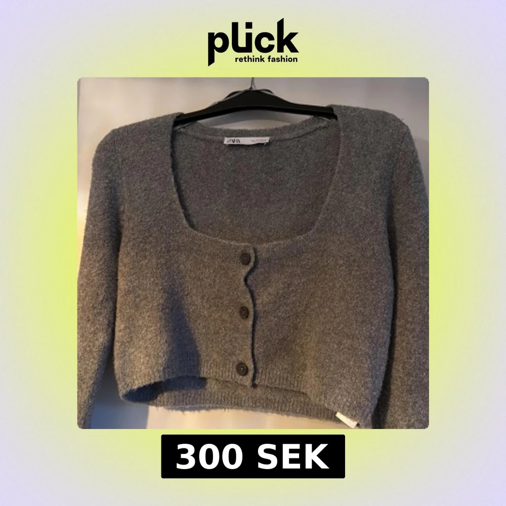 Säljer en stilren grå kofta från Zara. Den är croppad med tre knappar framtill och har långa ärmar. Perfekt för lager-på-lager under höst och vår.