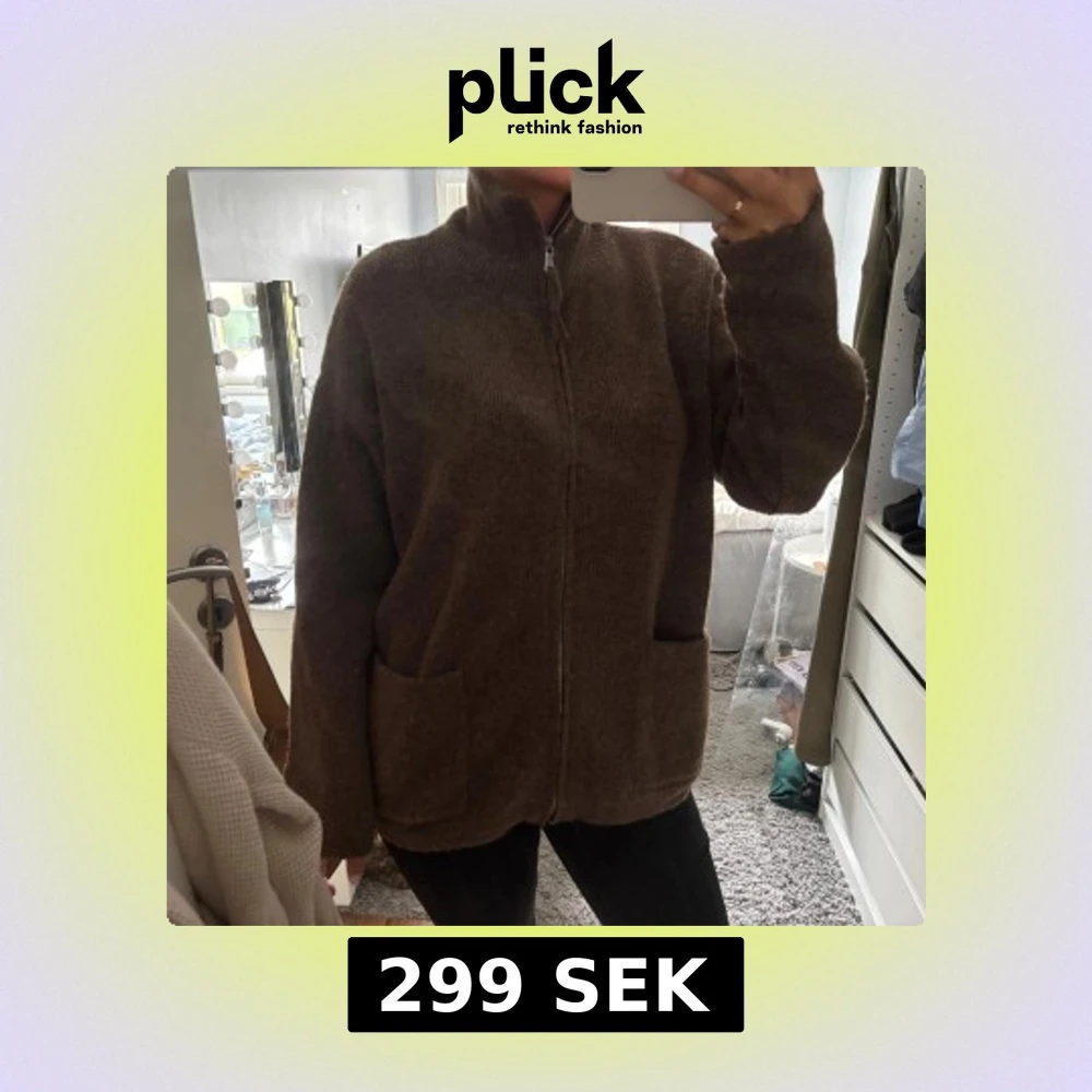 Mysig brun stickad kofta med dragkedja framtill och två stora fickor. Den är inte nopprig, kommer inte till användning❤️den är i storlek XL men sitter som en M-L på mig, jag själv har oftast M. Köpt för 800kr