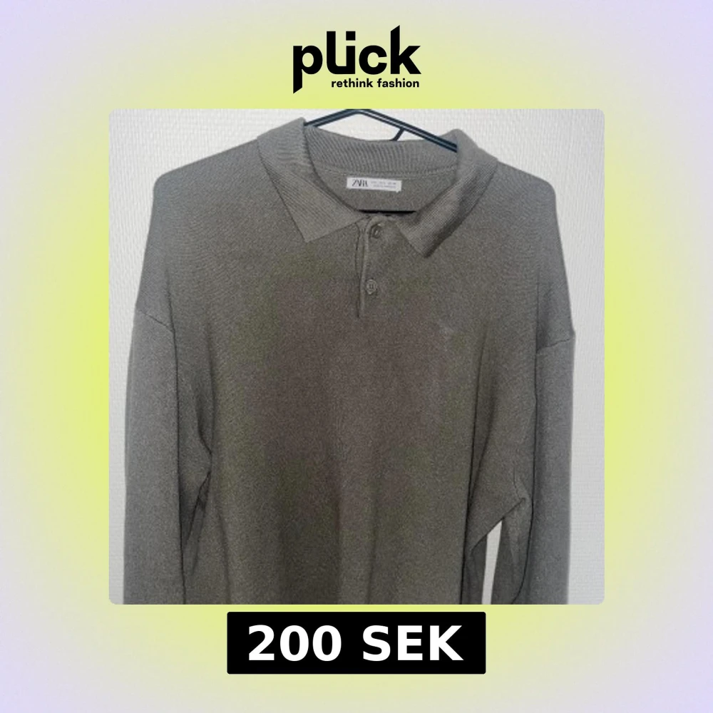 Snygg olivgrön pikétröja från Zara med klassisk krage och knappar framtill. Tröjan är långärmad och har en stilren, enkel design som passar perfekt till jeans eller chinos. Materialet känns mjukt och lätt mot huden.
