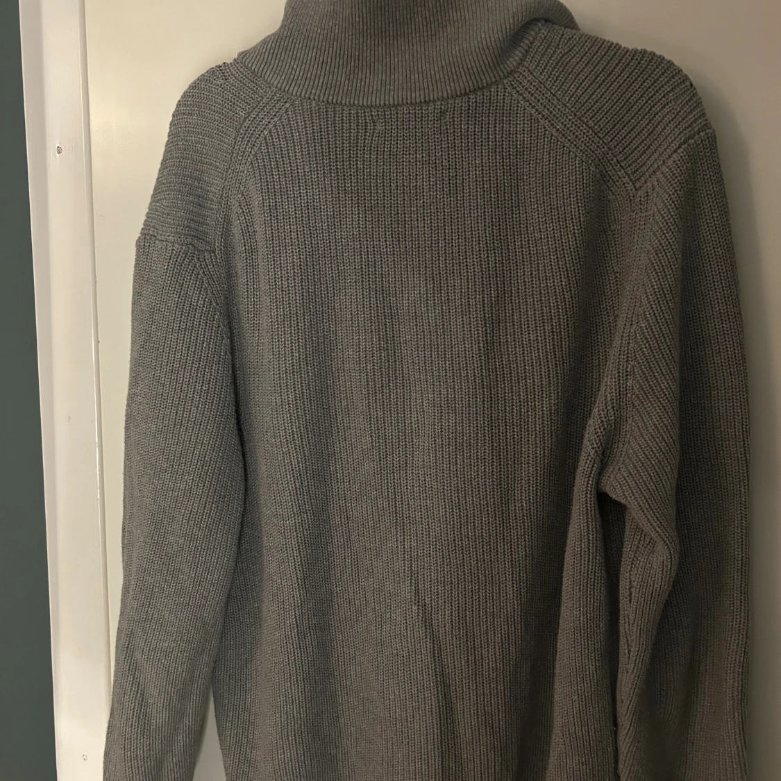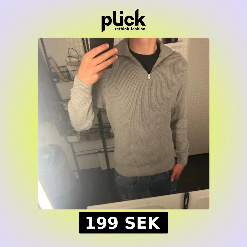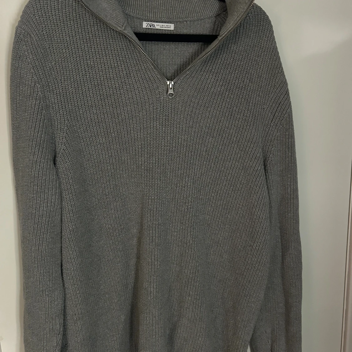 Säljer en grå stickad tröja från Zara med half zip-dragkedja och hög krage, Perfekt för lager-på-lager under kyliga dagar. Använt 1 gång