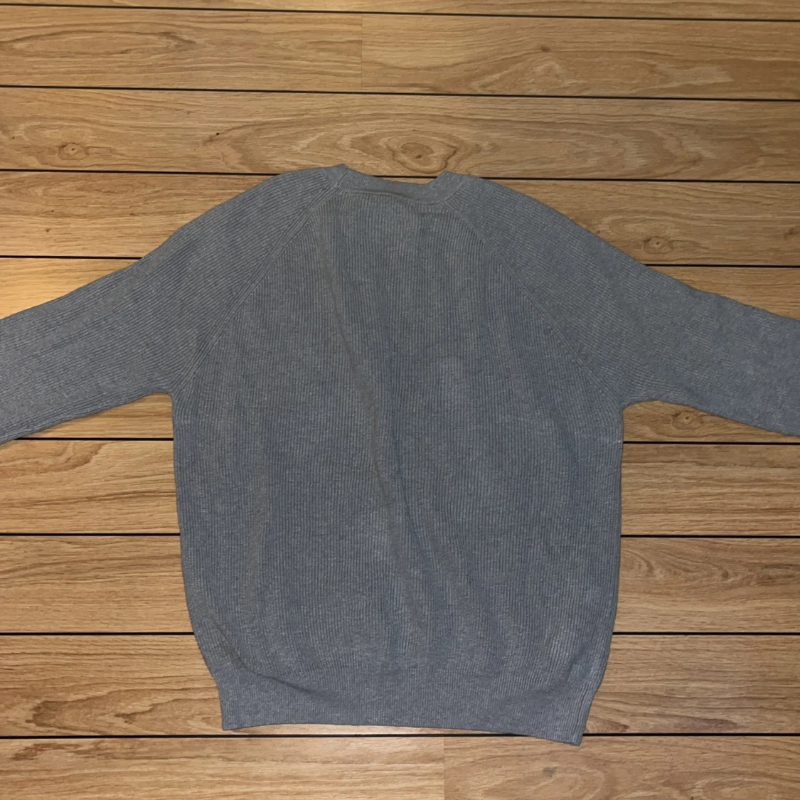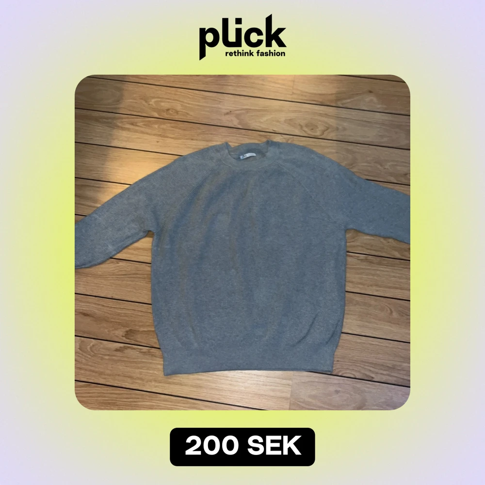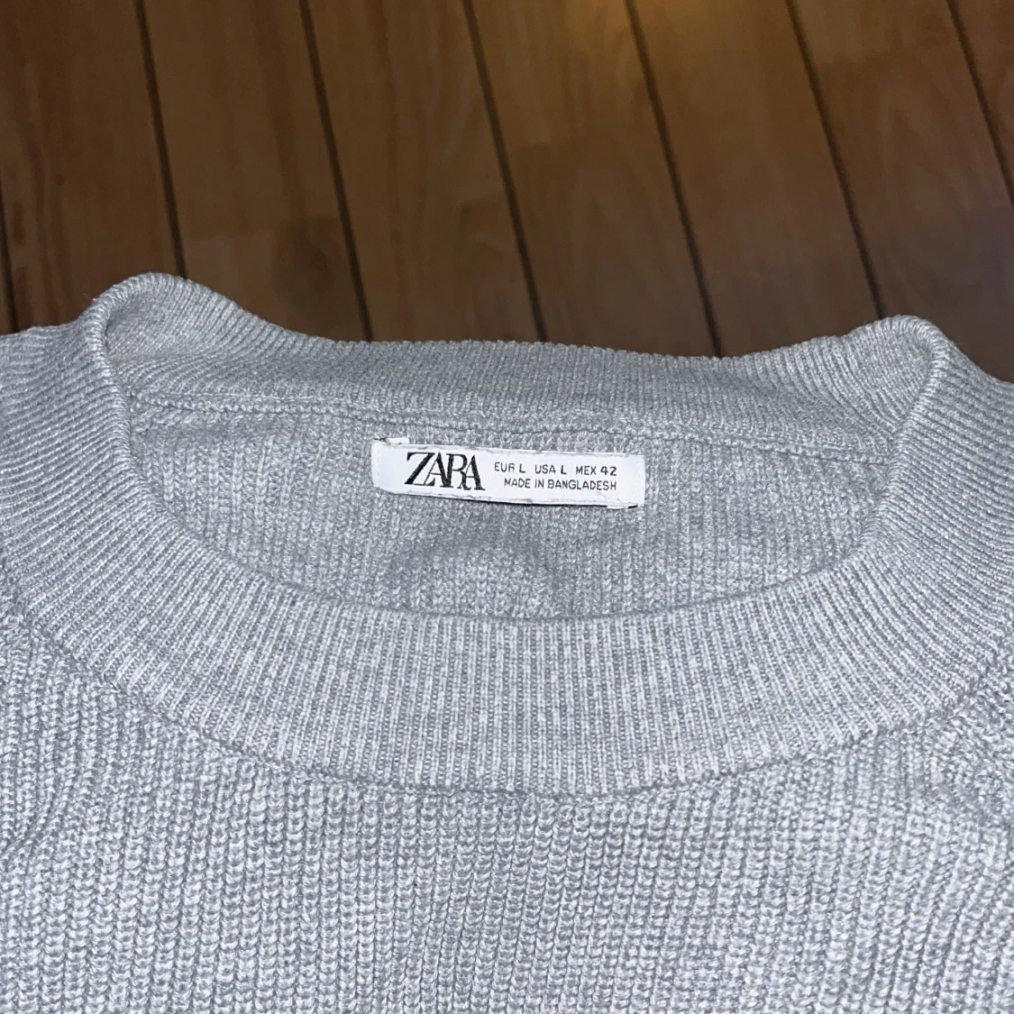 Säljer en stilren grå stickad tröja från Zara i storlek L. Perfekt för kyliga dagar med sin mjuka och bekväma passform. Tröjan har långa ärmar och en klassisk rund halsringning. Passar både till vardags och lite finare tillfällen. 🧶