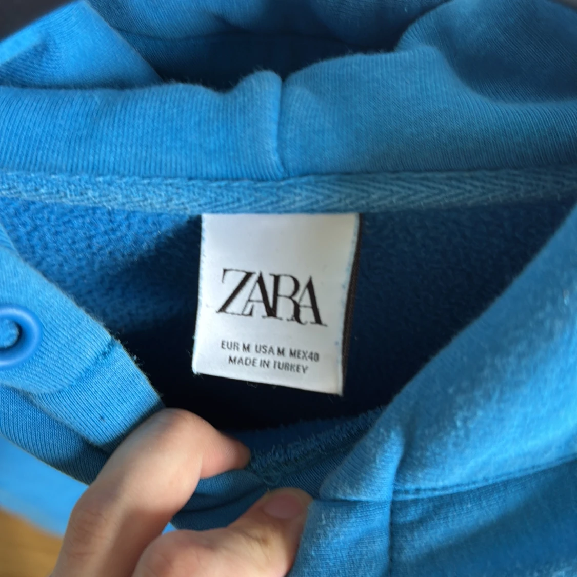Säljer en chill blå hoodie från Zara i storlek M använt bara nåra gånger