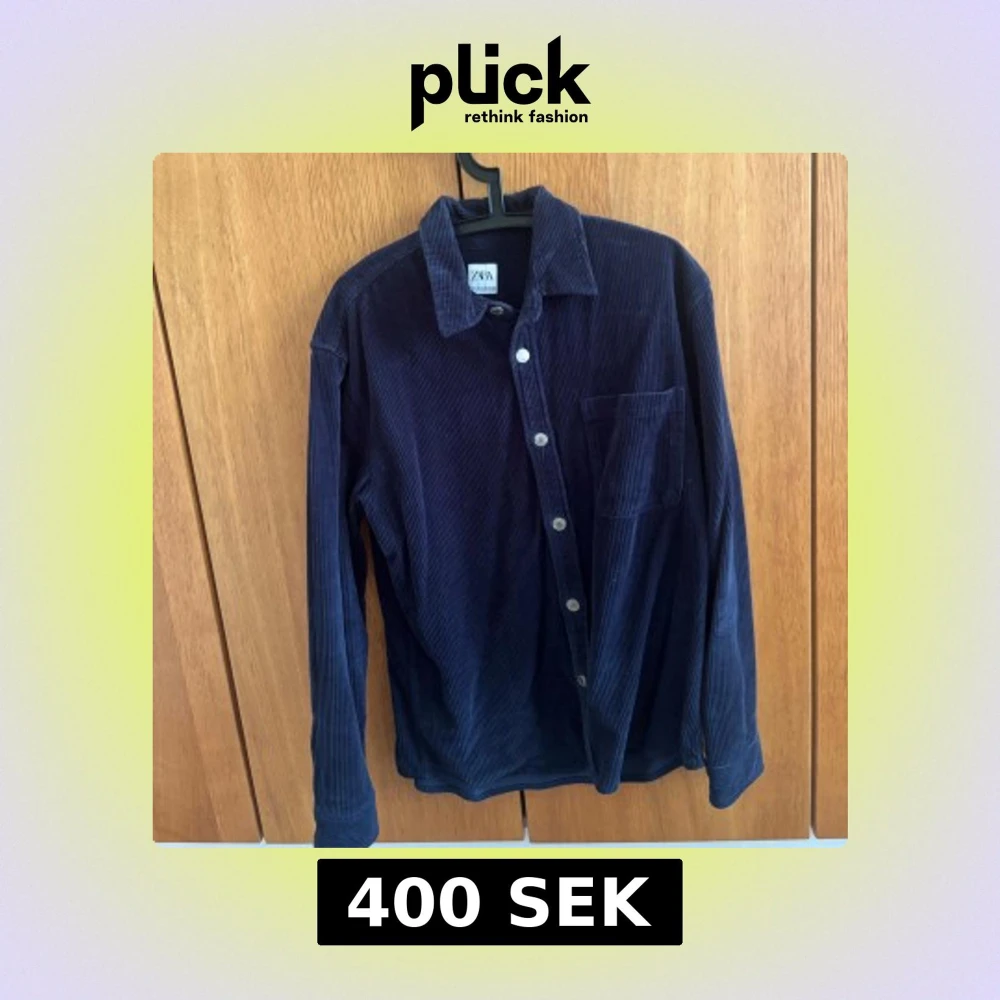 Säljer en snygg mörkblå manchesterskjorta från Zara i storlek M. Skjortan har klassisk krage, bröstficka och knäppning framtill. Perfekt för dig som gillar en lite loose och avslappnad stil. Materialet är mjukt och ger en cool retrovibe.