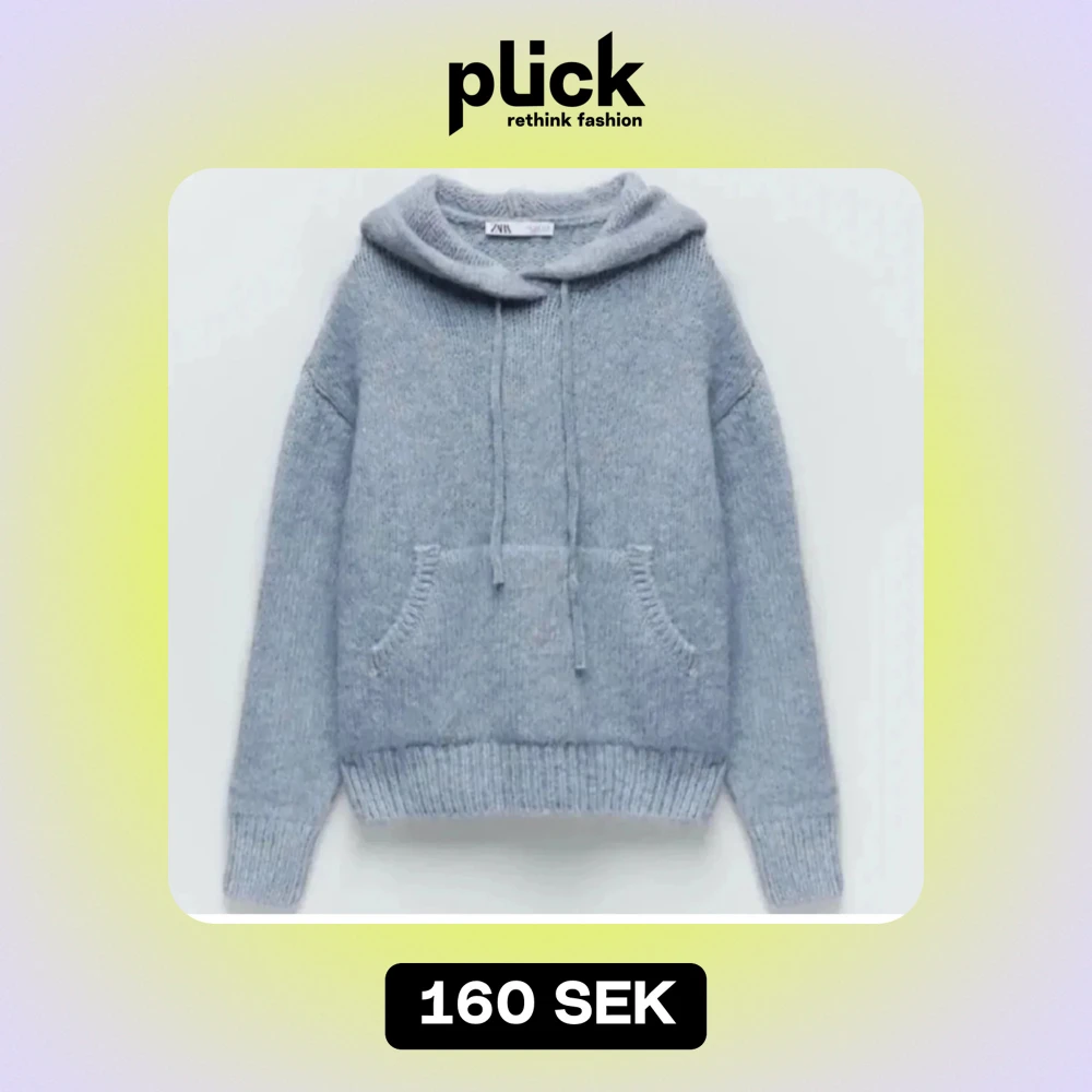Mysig ljusblå stickad hoodie från Zara, perfekt för höst och vinter. Min är samma modell som första bilden men har inte snören i luvan kvar. Skriv vid frågor, pris kan diskuteras