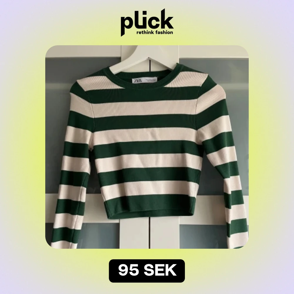 Långarmad tröja från Zara med gröna och vita ränder. Kort i modellen. Använd ganska mycket men i fint skick utan defekter. Säljer pga att den inte kommer till användning längre. Pris kan diskuteras. Använd gärna köp nu!💗