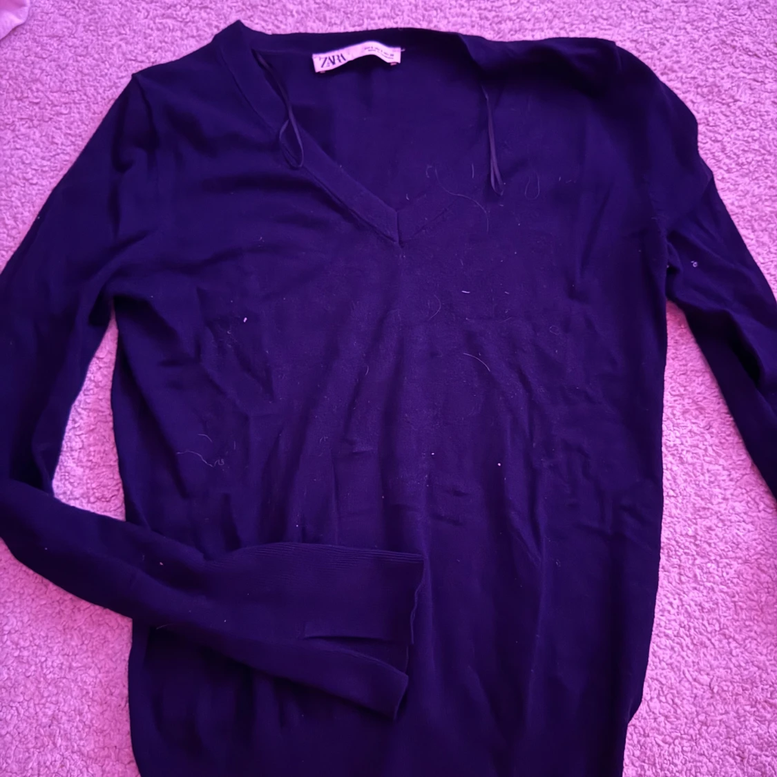 En svart, tunn och mjuk tröja från Zara med v-ringning och långa ärmar. Perfekt för lager-på-lager och enkel att matcha med olika outfits. Stilren och klassisk design som funkar året runt.
