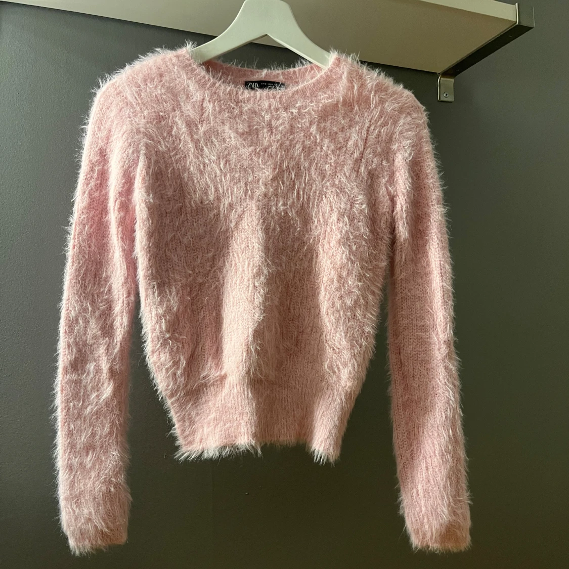 Supermjuk och fluffig ljusrosa tröja från Zara med lång ärm och rund hals.
