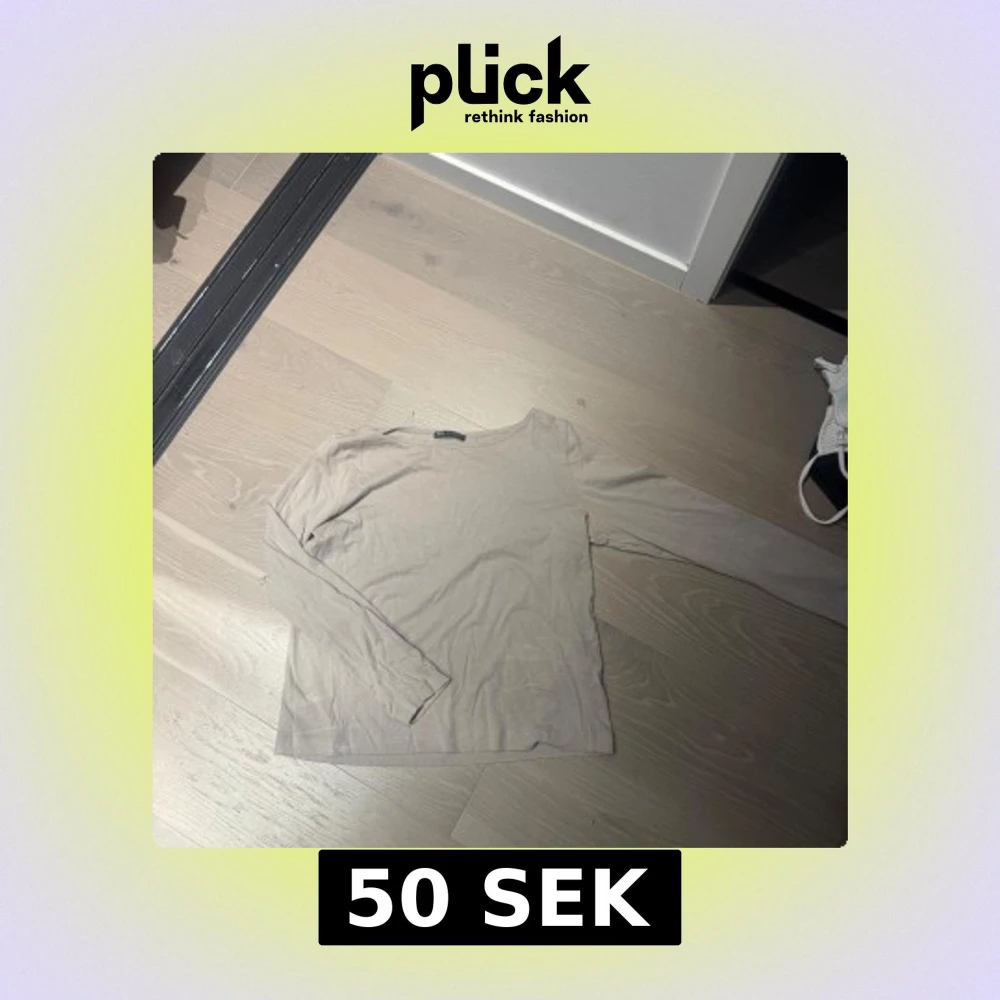 Säljer en enkel och stilren beige långärmad topp från Zara. Tröjan har rund halsringning och är tillverkad i mjukt bomullsmaterial. Perfekt att matcha med jeans eller kjol för en clean look.