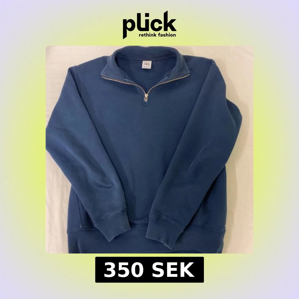 Säljer en stilren blå tröja från Zara med dragkedja vid halsen. Perfekt för en avslappnad look. Bra skick inga skador eller fläckar priset diskuteras sen snabb affär