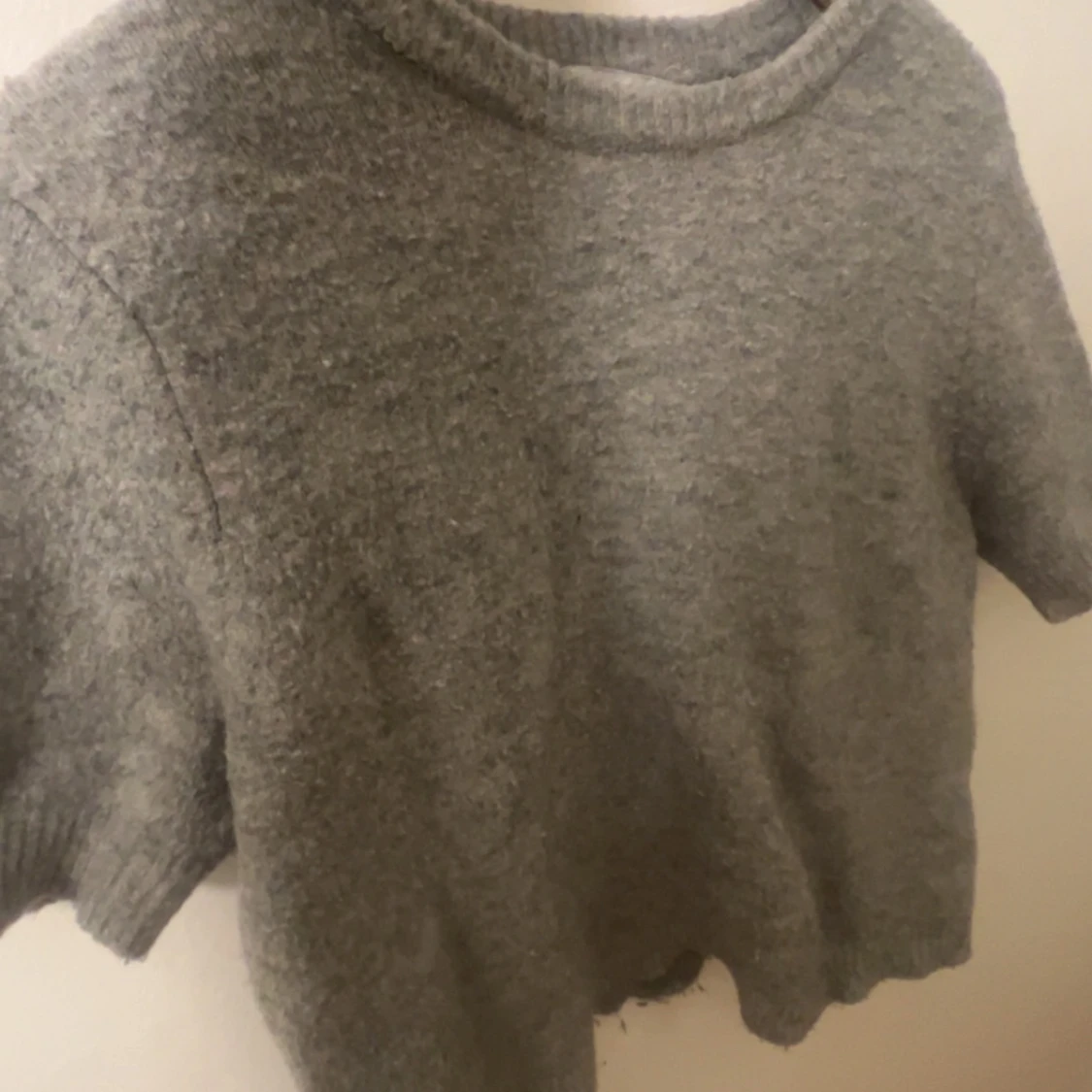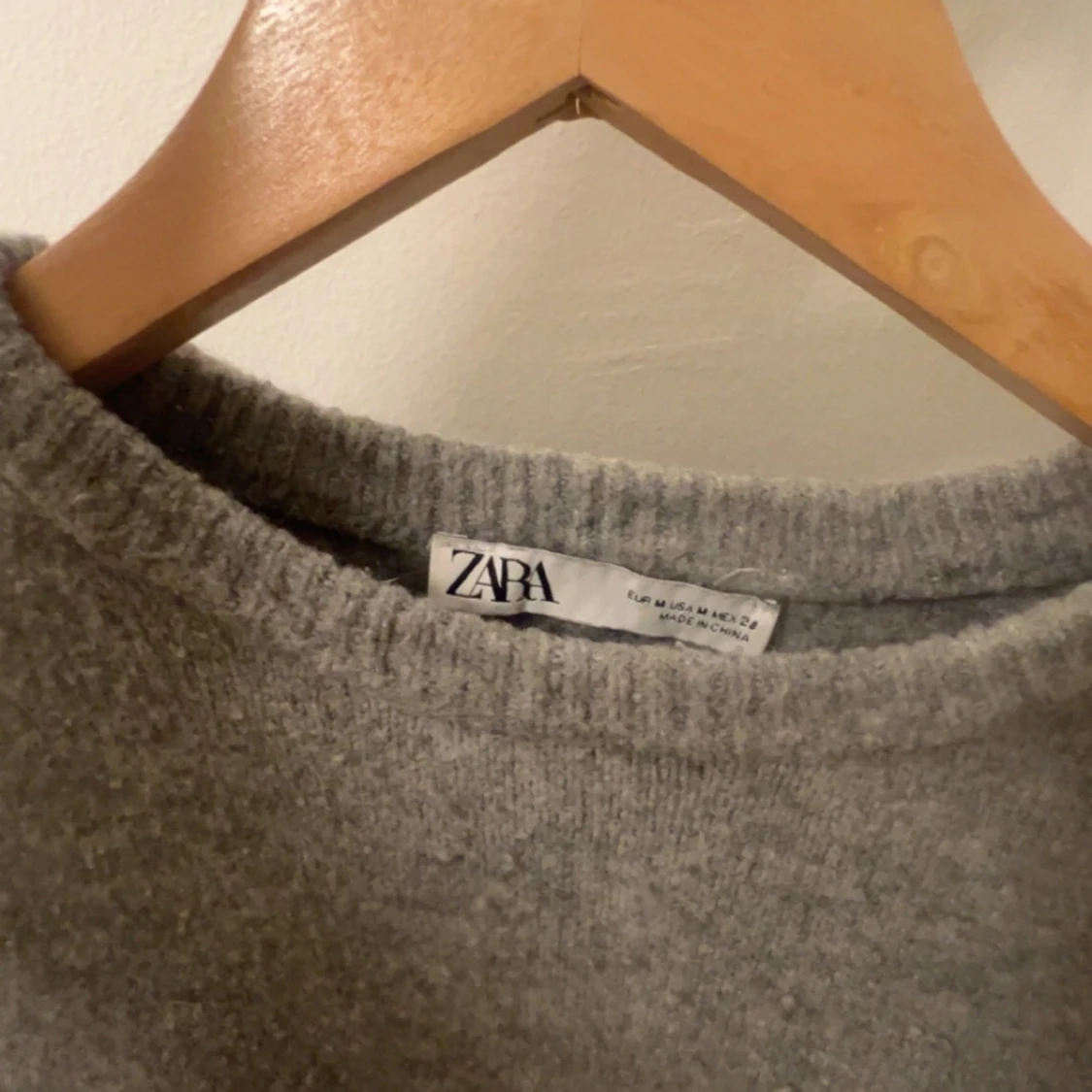 Mysig grå stickad tröja från Zara med rund halsringning. Perfekt för lager-på-lager och enkel att matcha med olika outfits. Tröjan har en klassisk passform och är superbekväm.